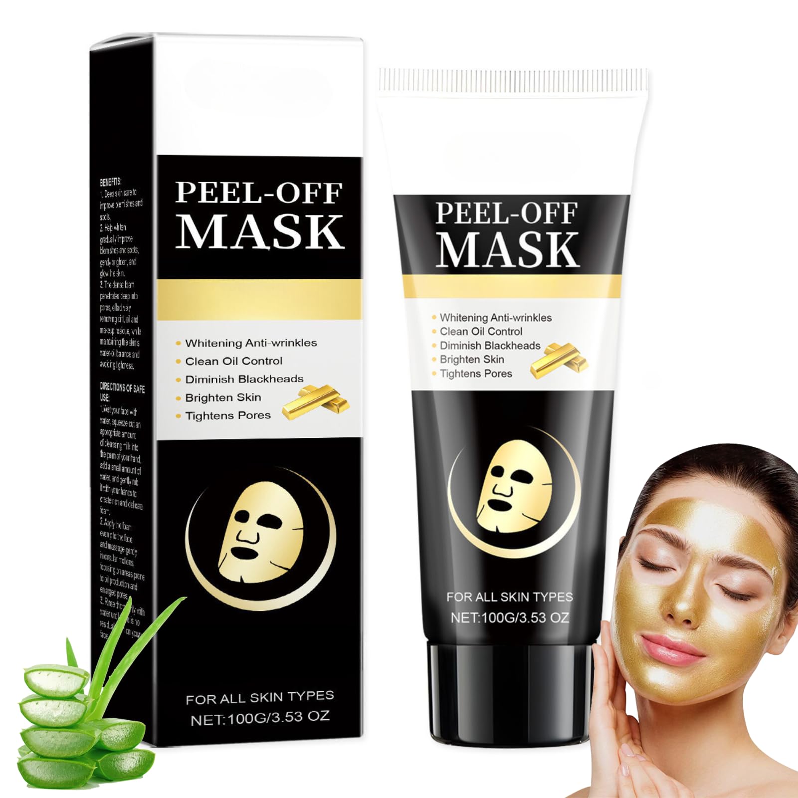 Gold Peel Off Face Masks ?Deep Skin Clean Purifying Acne Based on the strong cleaning ability, .Our Face Masks Skincare Peel Off can effectively balance oil secretion,draws out bacteria, dirt, chemicals, poisons and other impurities from the skin, removing blackheads and combating acne. ?Anti Wrinkle Anti Aging Facial Mask The peel off face mask imparts an opulent, radiant glow and locks in moisture for ultra-hydrated skin, leaves the skin silky smooth with radiant complexion.Increases cellular renewal, helps to improve the appearance of fine lines and wrinkles. ?Skin Care Face Lifting Firming Mask Peel Off Face Masks can Rejuvenates and rebalance skin while visibly shrinking pores. Sweep overskin for a look that's clean, bright, and radiant. Skin blooms instantly with new radiance and freshness.The Gold Face Mask also tightens pores and educes inflamation to create the appearance of smooth, youthful skin. Packing includes 1* Collagen Peel Off Face Masks How to use 1. After the first cleaning, apply a warm towel in the face for 3-5 minutes to open the pores (keeping the face moist) 2. Apply an appropriate amount of the product evenly to the face. Wait 10 to 20 minutes for the mask to dry. Carefully peel off the mask from top to bottom. 3.Clean the face and apply the essence or emulsion. Safety Warning * For external use only. * Do not store in the sun. * Rub a very small amount on the inside of the elbow area to test for any allergic reaction before use. * Avoid contact with eyes. * Keep out of the reach of children. SAFETY WARNING For external use only. Avoid contact with eves. Keep away from naked flame or direct heat sources.?Suitable For Dry, And Oily Skin Types?This gold peel off face masks is suitable for all skin types. The face peel mask dries quickly and effortlessly peels off. Purchase our gold peel-off mask and transform your skin care routine for a brighter, smoother complexion. ?Glowing Skin?This purifying deep cleansing collagen face mask eliminates blackheads, brightens and refines your skin by deeply cleanse and nourish skin, brings you an energetic glow look. ?Skin Purifying & Anti Aging?This face masks skincare peel off can easily remove pore-clogging dirt and extra oils, effectively preventing blackheads and tightening your skin. Regularly use this peel off face masks to tighten pores and provide firm, youthful & healthy skin. ?Smooth Skin?Our peel off face masks will tighten your skin & reduce pores, improve rough skin and effectively reduce acne blackheads.The Collagen Face Peel Off Mask has a significant effect on body fading, whitening, moisturizing and reducing wrinkles. Deep cleaning of the mask will make your skin smoother and cleaner. ?Deep Skin Clean Purifying Acne? Treat your skin with this Peel Off Face Masks that effectively draws out blackhead, impurities, dirt, excess oil, and pollutants without disrupting skin’s moisture barrier. Unclogs pores. Leaves skin healthy, fresh, and luminous.