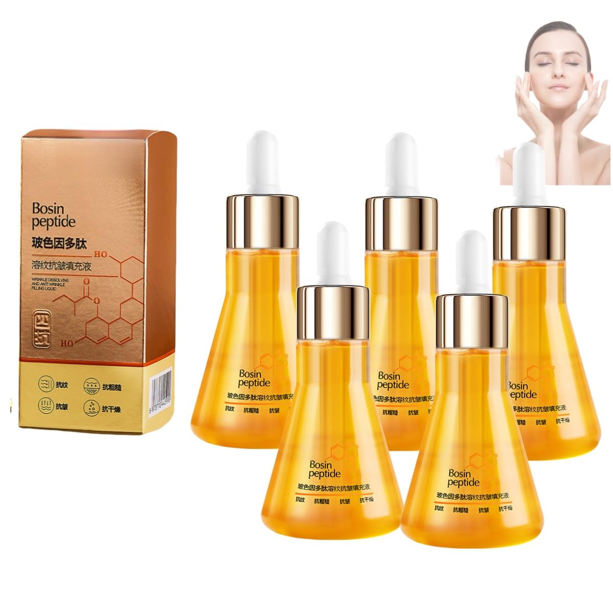 Specification Name: Peptide Reversal Serum Net Content: 50ml Shelf Life: 3 years (store refrigerated) Directions for Use: After cleansing and toning your face, take an appropriate amount of this product in your palm, apply evenly to your face, gently pat and massage until absorbed. Package Contents: 2 3 5pcs Peptide Reversal Serum Notes: 1) Due to manual measurement, slight measurement deviation is possible. 2) Due to differences in monitors and lighting effects, the actual color of the item may be slightly different from the color shown in the picture. Safety Warning 0EASY TO USE: Apply our serum to a clean face and neck every morning and evening before moisturizing. Regular and consistent use of our anti-wrinkle serum improves skin elasticity, boosts hydration, and maintains skin firmness. REstoreS SKIN ELASTICITY: The natural ingredients also stimulate collagen synthesis in the skin, which helps improve the skin's ability to retain water, resulting in softer, smoother, and more resilient skin that maintains a more youthful appearance. NATURAL INGREDIENTS: Made from high-quality, natural ingredients, this facial serum helps improve skin elasticity, reduce wrinkles, and enhance overall skin texture. Revitalizing and Repairing: The peptide serum is enriched with powerful peptides and nourishing antioxidants that penetrate deep into the skin to promote renewal and give it a youthful glow. Peptide serum: luxuriously revitalizes the skin, improves elasticity, restores a uniform and translucent skin texture, hydrates and is non-sticky.Description du produit Description du produit Spécification Nom : Sérum inversé aux peptides Contenu net : 50 ml Durée de conservation : 3 ans (à conserver au frais) Mode d'emploi : Après avoir nettoyé et tonifié le visage, prendre une quantité appropriée de ce produit dans la paume, l'appliquer uniformément sur le visage, tapoter doucement et masser jusqu'à absorption. Contenu de l'emballage : 2 3 5pcs Peptide Reversal Serum Notes. 1) En raison des mesures manuelles, un léger écart de mesure est possible. 2) En raison des différences de moniteurs et des effets de lumière, la couleur réelle de l'article peut être légèrement différente de la couleur montrée sur l'image. Avertissement De Sûreté 0FACILE À UTILISER : Appliquez notre sérum sur un visage et un cou propres chaque matin et chaque soir avant de l'hydrater. L'utilisation régulière et continue de notre sérum antirides améliore l'élasticité de la peau, renforce l'hydratation et maintient la fermeté de la peau. RESTAURE L'ÉLASTICITÉ DE LA PEAU : Les ingrédients naturels stimulent également la synthèse du collagène dans la peau, ce qui contribue à améliorer la capacité de la peau à retenir l'eau, avec pour résultat une peau plus douce, plus lisse et plus résistante qui conserve une apparence plus jeune. INGRÉDIENTS NATURELS : Fabriqué à partir d'ingrédients naturels de haute qualité, ce sérum pour le visage contribue à améliorer l'élasticité de la peau, à réduire les rides et à améliorer la texture générale de la peau. Revitalisant et réparateur : le sérum aux peptides est enrichi en peptides puissants et en antioxydants nourrissants qui pénètrent profondément dans la peau pour favoriser son renouvellement et lui donner un éclat de jeunesse. Sérum peptidique : revitalise luxueusement la peau, améliore l'élasticité, restaure une texture de peau uniforme et translucide, hydrate et ne colle pas.Collagen Peptide Serum, Peptide Reversal Facial Serum, estompe les ridules, raffermit la peau affaissée, convient à tous les types de peau 5PCS