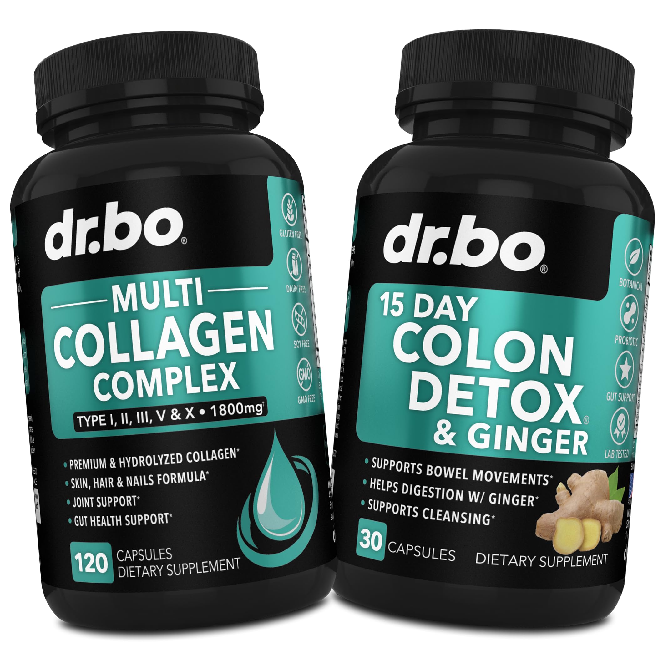 Support skin, hair, nails and gut health with our hydrolyzed multi collagen peptides pills and 15 day colon cleanse detox with ginger capsules.