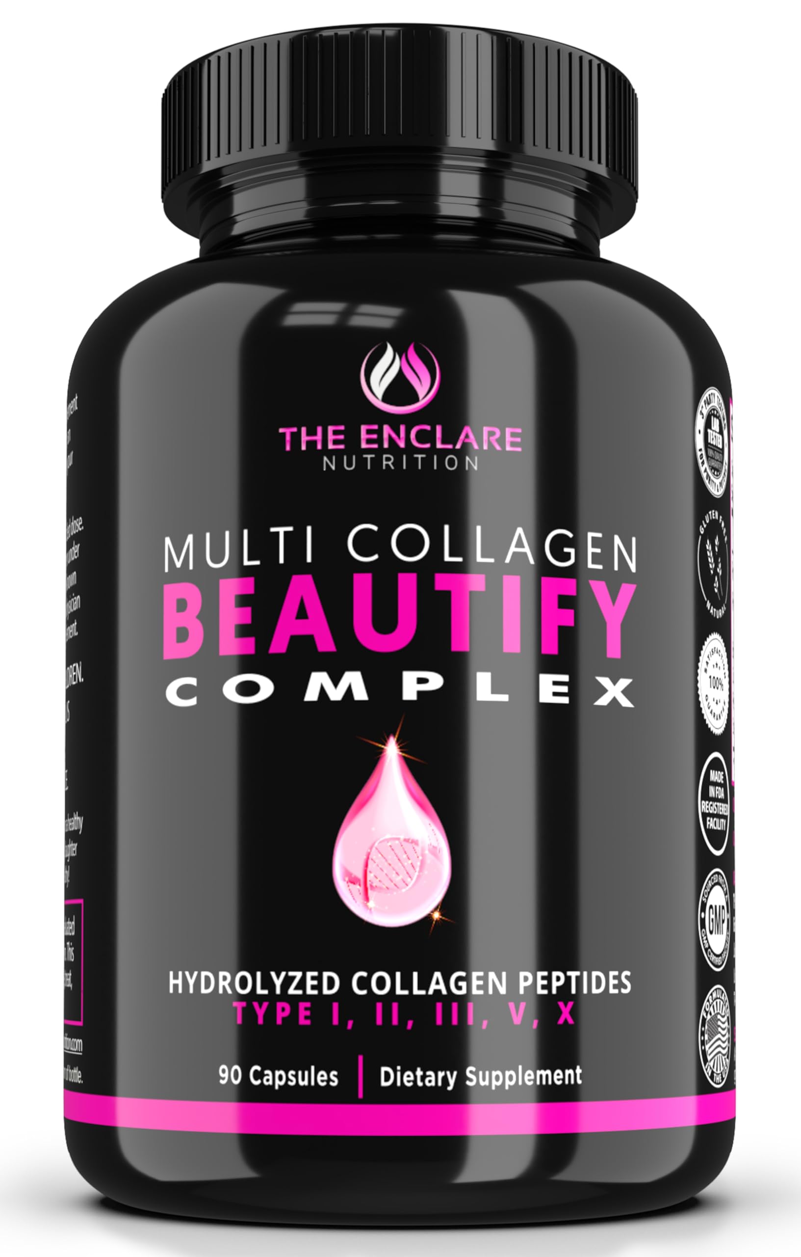 ✓ WE CARE ABOUT YOUR HEALTH AND SUCCESS SO FEEL SAFE SECURE WITH OUR NATURAL - Collagen Supplement For Men Women MADE IN THE USA With Highest Quality Standards, In A Facility That Follows Strict Good Manufacturing Practices (GMP) Are 3rd Party Tested. Enclare Collagen Peptides Capsules Contain No Fillers, Additives, Gluten, Dairy, Peanut, Soy, Wheat, Yeast, Or Preservatives. Join Our 90 Days Challenge See The Difference In 7 Days. Not Happy? Contact Enclare Directly. ✓ NO MESS, EASY TO SWALLOW AND CARRY - Our Premium Collagen Pills Are Perfect The Perfect Alternative To Collagen Powder, Collagen Liquid, Collagen Shots And Collagen Gummies Containing Sugar. Our Collagen Capsules For Women And Men Are Easy To Take Anywhere Perfect For Travel. Easy To Carry To Work, School, Gym. Take 3 Collagen Powder Capsules Daily With Water. Don't Just Watch Your Collagen Decrease By 1.5 Per Day From Age 25, Add Multi Collagen Beautify Complex To Your Daily Routine. ✓ BUILD MUSCLE IMPROVE DIGESTIVE HEALTH - Achieve Your Low Carb Or Ketogenic Diet Results With Enclare Hydrolyzed Collagen Peptides Which Helps You Feel Full. They Are Great To Take Before A Workout Due To Their Support In Maintaining Healthy Strong Lean Muscle. Pair Beautify Complex Multi Collagen Protein Pills With Enclare Recipes Products. ✓ REVITALIZE YOUR BEAUTY HEALTH WITH BEAUTIFY - We All Want To Stay Young Forever, Retain Our Youthful Glow, And Move With Ease. Our Collagen Protein Pills Features All 5 Types Of Collagen Hydrolysate Clinically Proven To Supports The Ultimate Beauty And Health Benefits As You Age - Graceful Aging, Tight Skin, Vibrant Hair Strong Nails, Flexible Movement, And Proper Digestive Health! Making Them The Go-to Hair Skin And Nails Vitamins Supplement Perfect For The Entire Body. ✓ ALL IN ONE MULTI COLLAGEN BEAUTIFY COMPLEX - Our High Protein Collagen Supplements With Five Diverse Collagen Types That Work Together For Optimum Beauty From The Inside Out. Enclare Beautify Multi Collagen Protein Provides A High Quality Blend Of Types I, Ii, Iii, V, And X Hydrolyzed Collagen Peptides From Four Different Sources, Beef (bovine), Marine (fish), Chicken Bone Broth, And Eggshell Membrane. Beautify Contains All The Collagen Your Body Needs In Convenient Collagen Capsules.