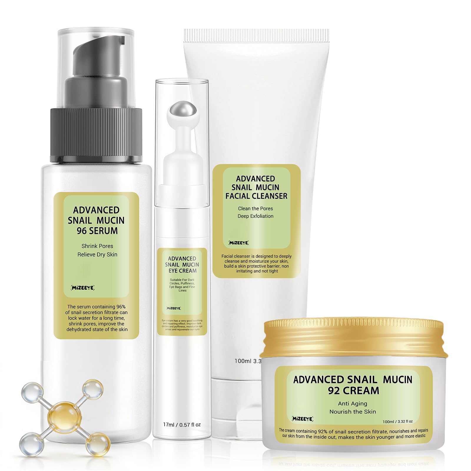 Product Name: 4PCS Skin Care Set: Face Wash Serum Face Cream Eye Cream Product Feature Repair damaged skin, Soothe dry skin, Hydrate and moisturize, Shrink pores, Reduce dark spots and acne, Improve fine lines and wrinkles, Cleanse skin, Anti aging. Anti-aging Repair Facial Kit The natural skin care kit has a good effect on anti-aging and repair. Rich peptides and collagen repair our damaged skin, moisturize dry and dehydrated skin, promote collagen production, soothe wrinkles and anti aging. Niacinamide Hyaluronic Acid Skincare Set For Women The set contains niacinamide and hyaluronic acid, which are gentle and non irritating, moisturizing the skin, locking in moisture, shrinking pores, reducing acne and improving skin texture. Great Gift The gift set is a great gift for girls mothers. You can give it to relatives, family, or friends. Skin care gift set can be used as gifts for Valentine's Day, Mother's Day, Christmas, Thanksgiving, housewarming, and other holidays. Suitable For Travel Carrying The skin care travel kit is suitable for use in the morning and evening and is convenient to carry when traveling. Moisturizing and repair the skin. It is a great travel skin care set.? SKINCARE GIFT SET ---- Do you want to give to the person you love a set of repair and anti-aging skincare gift set? The collagen face set can meet the daily skincare experience, suitable for all skin types and easy to carry. You can trust it. ? DAILY SKINCARE ROUTINE SET ---- Skincare set can meet daily needs. Face cleanser can clean pores, serum can moisturize and repair damaged skin, eye cream can relieve dark circles, puffiness and fine lines and face cream can improve skin texture and anti-aging. ? REPAIR MOISTURIZING FACE CARE KIT ---- The facial set contains niacinamide and hyaluronic acid, which have excellent repair and soothing effects on the skin. Repair damaged and dry skin, shrink pores and improve skin texture. ? ANTI WRINKLE COLLAGEN SET ---- The skin care set contains rich collagen, which promote the generation of facial collagen, soothe fine lines and wrinkles, build a skin barrier, enhance skin elasticity and make the skin younger. ? PEPTIDE SKINCARE SET ---- Collagen is a natural substance that has good effects on repairing and nourising. Effectively improve our skin condition, nourish the skin, keep the skin smooth and elastic.