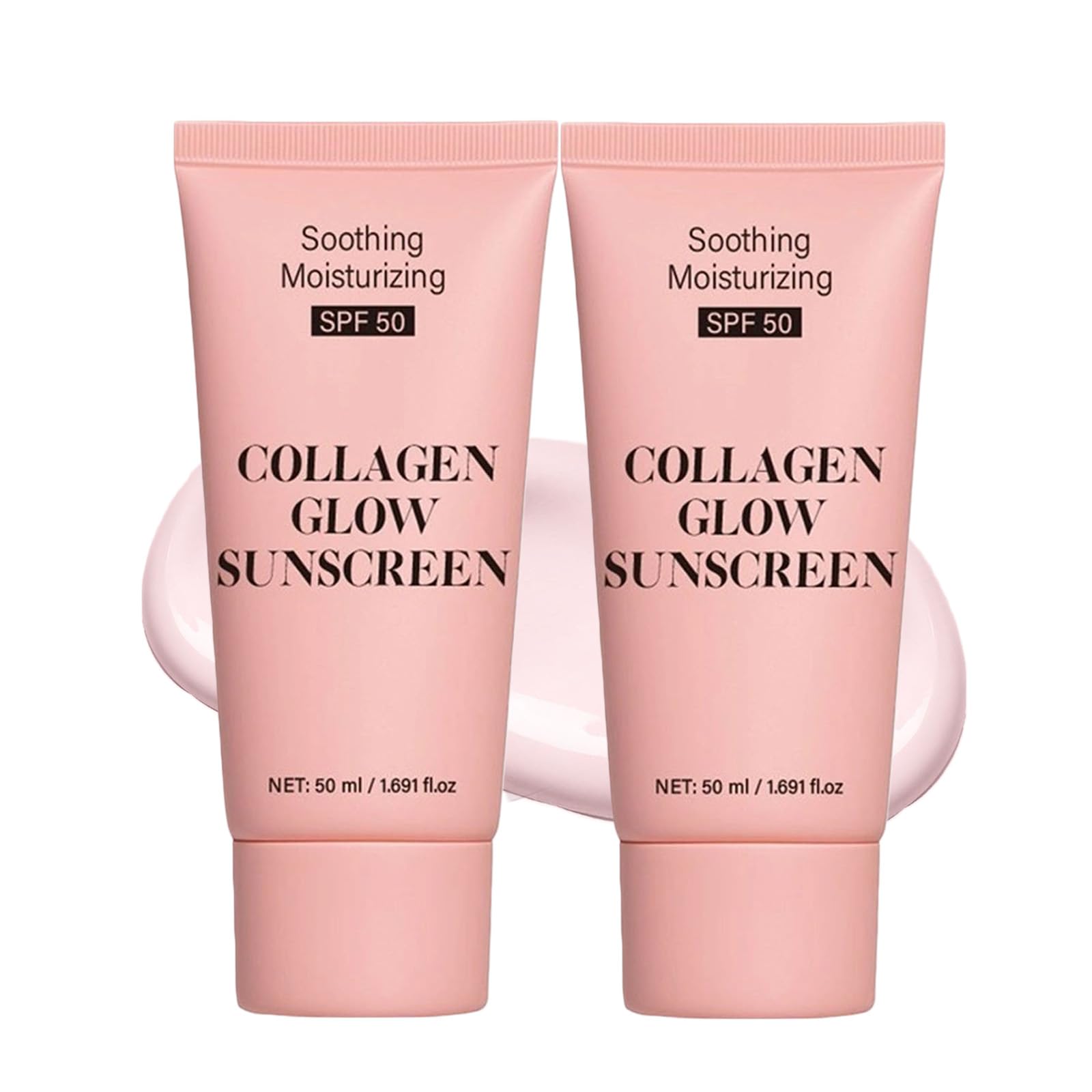 Collagen Sunscreen for Face SPF 50 Hydrating Facial Sunscreen with Collagen Broad Spectrum UVA/UVB Protection Natural Glow Effect Non-Greasy & No White Cast Travel Size (2PC)