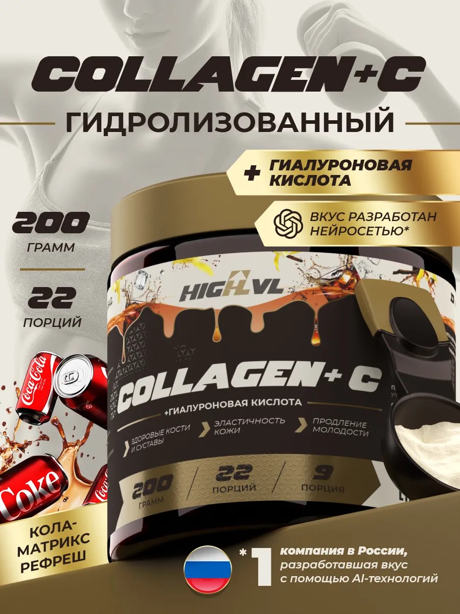HIGHLVL COLLAGEN + C with Cola-Vanilla Flavor is a high-quality supplement designed to support joint health, improve skin condition, and strengthen hair.