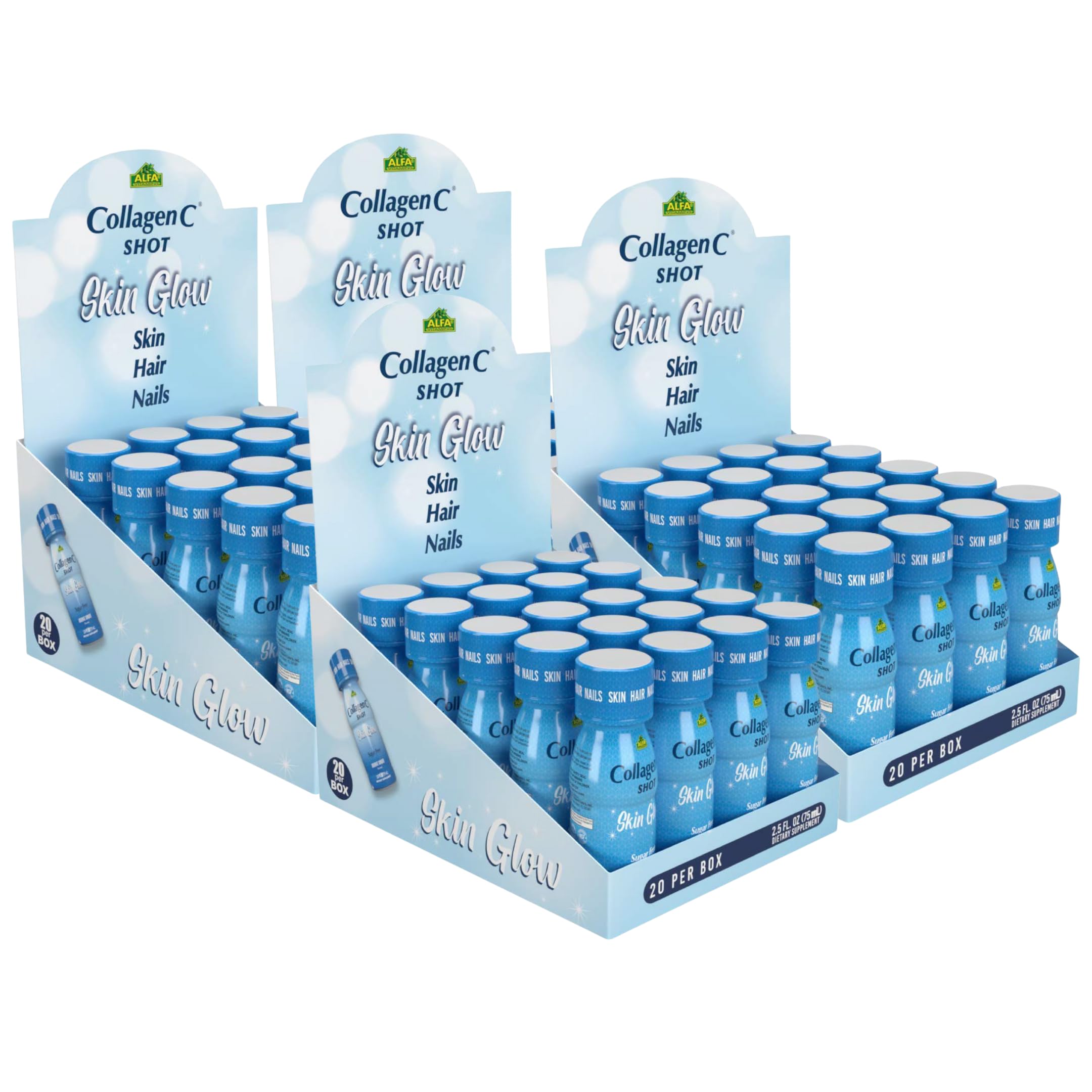 CollagenC - Skin Glow Shot 20 Pack - Collagen 10g, Vitamin c 1000mg, Biotin 1000mcg, Vitamin D 800 IU - Natural Orange-Ginger Flavor 2.0oz Bottle - 80 Pack