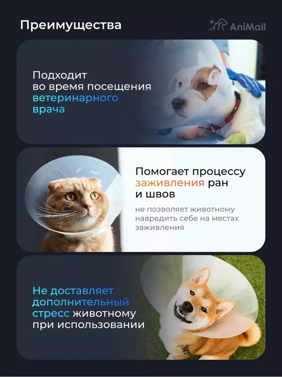 Этот защитный воротник для собак и кошек — отличный помощник для ухода за питомцами после операций или при заживлении ран. Он сделан из прозрачного пластика, поэтому ваш мягкий друг сможет спокойно видеть окружающий мир и не будет чувствовать себя ограниченным. Удобная форма в виде конуса позволяет животному чувствовать себя комфортно и свободно двигаться по дому. Такой аксессуар отлично подходит для домашних любимцев, помогая защитить швы и предотвращая случайные повреждения раны, что ускоряет процесс выздоровления. Для более надежной фиксации рекомендуется использовать с ошейником, чтобы воротник не смещался и оставался на месте.