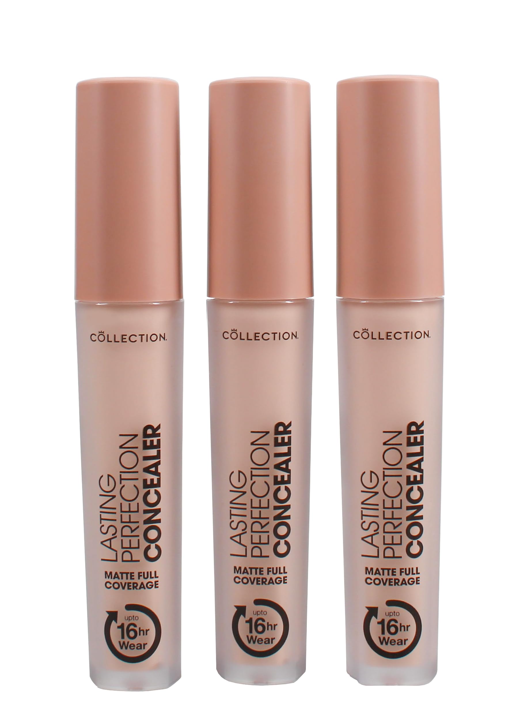 At Collection Cosmetics, we pride ourselves on producing high quality, easy to use cosmetics at an affordable price. We're a favorite of MUAs, beauty journalists and bloggers, especially with many of our vegan products. Something for everyone from that everyday natural glow to a glamorous night out, we have something for you. Glam Crystals from our Lasting Perfection range we have it all: beauty for your eyes, lips, face and nails. We earned our cosmetic stripes by doing what we do best: making makeup, for makeup lovers. Collection has created a full coverage, buildable concealer to suit every skin tone with 20 shades to choose from to help everyone find the perfect match. Plus, the specially designed formula means its mask is strong (goodbye to transfer), buildable, blendable and breathable lasts up to 16 hours to keep up with your busy lifestyle, meaning your makeup staying in place is one less thing to worry about. Try Fair for fair to light tones with a pink undertone (previously Fair 1). Instructions for use: 1. Gently sweep over areas of concern using the doe foot applicator 2. Apply in thin layers until you find the desired level of coverage. SAFETY WARNING For external use only.Vegan: At Collection Cosmetics, we are proud to offer a wide range of vegan products. Sweatproof: Fear no more hot weather, as this concealer has been designed to resist sweat to keep you blemish-free. 3-Pack: This convenient pack contains three Lasting Perfect concealers so you are never without your favorite Collection product. Buildable: Easily create your desired coverage, as this liquid concealer has been designed to blend seamlessly, allowing you to easily layer to cover any imperfections, blemishes, or dark circles. Long-lasting: A liquid concealer to keep up with your busy lifestyle. The Collection's Lasting Perfection Concealer has been developed to deliver up to 16 hours of high-coverage results for flawless skin. Chez Collection Cosmetics, nous sommes fiers de produire des cosmétiques de haute qualité, faciles à utiliser à un prix abordable. Nous sommes un favori des MUA, des journalistes de beauté et des blogueurs, en particulier avec beaucoup de nos produits végétaliens. Quelque chose pour tout le monde de cette lueur naturelle quotidienne à une soirée glamour, nous avons quelque chose pour vous. Glam Crystals de notre gamme Lasting Perfection nous avons tout pour plaire : beauté pour vos yeux, lèvres, visage et ongles. Nous avons gagné nos rayures cosmétiques en faisant ce que nous faisons de mieux : faire du maquillage, pour les amateurs de maquillage. Collection a créé un correcteur à couverture complète et à construire pour s'adapter à chaque teint de peau avec 20 nuances au choix pour aider tout le monde à trouver la correspondance parfaite. De plus, la formule spécialement conçue signifie que son masque est résistant (adieu au transfert), à construire, estompable et respirant dure jusqu'à 16 heures pour suivre votre style de vie occupé, ce qui signifie que votre maquillage reste en place est une chose de moins à craindre. Essayez la teinte Fair pour des tons clairs à clairs avec une nuance rose (précédemment Fair 1). Mode d'emploi : 1. Balayez doucement les zones préoccupantes à l'aide de l'applicateur pied de biche 2. Appliquez en fines couches jusqu'à ce que vous trouviez le niveau de couverture souhaité. AVERTISSEMENT DE SÛRETÉ Pour usage externe uniquement.Végétalien : chez Collection Cosmetics, nous sommes fiers d'offrir une large gamme de produits végétaliens. Résistant à la transpiration : ne craignez plus le temps chaud, car ce correcteur a été conçu pour résister à la transpiration pour vous garder sans imperfections. Lot de 3 : ce lot pratique contient trois correcteurs Lasting Perfect pour que vous ne soyez jamais sans votre produit Collection préféré. Constructible : créez facilement la couverture souhaitée, car ce correcteur liquide a été conçu pour se fondre sans couture, vous permettant de facilement superposer pour couvrir toutes les imperfections, imperfections ou cernes. Longue durée : un correcteur liquide pour suivre votre style de vie bien rempli. Le correcteur Lasting Perfection de la collection a été développé pour offrir jusqu'à 16 heures de résultats à haute couverture pour une peau impeccable.
