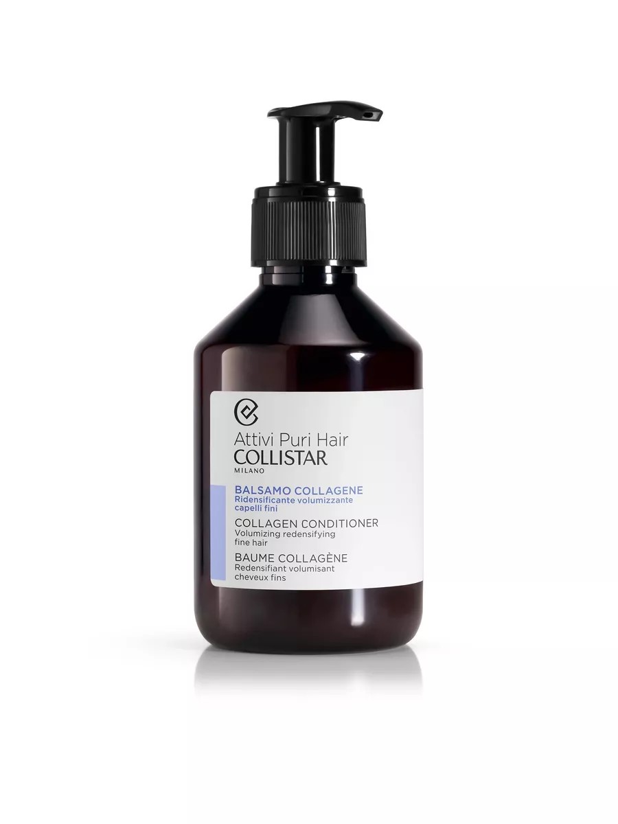 Collagen Conditioner from the Collistar Attivi Puri Hair Mono Serum line adds volume to hair without weighing it down or thickening it, and gradually strengthens the hair fiber.