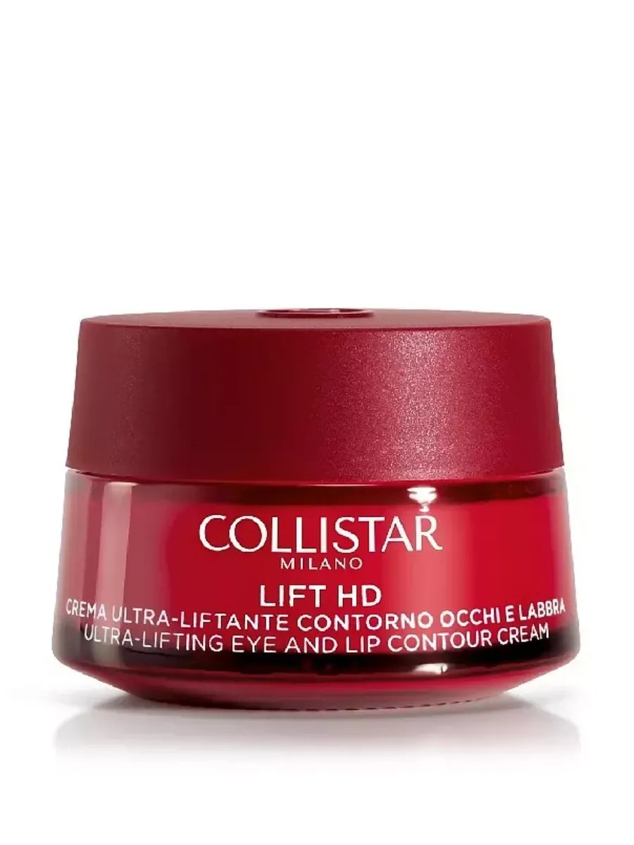 COLLISTAR Anti-Aging Eye and Lip Contour Cream, 15 ml. Collistar's anti-aging eye and lip contour cream enhances its anti-aging effects with the new, exclusive Lift HD complex, which combines precious brown algae extract with a powerful bioactive tetrapeptide to restore dermal-epidermal activity and stimulate collagen and elastin synthesis. This anti-aging eye and lip contour cream provides an immediate lifting effect and targeted regenerative and anti-aging action. Its formula uses original horse chestnut flower extracts to restore density to the skin around the eyes and lips. This reduces wrinkles and smooths the skin of the eyelids and lip contours. Special multi-reflective powder ingredients minimize the appearance of bags, dark circles, and fine lines. Suitable for all skin types.