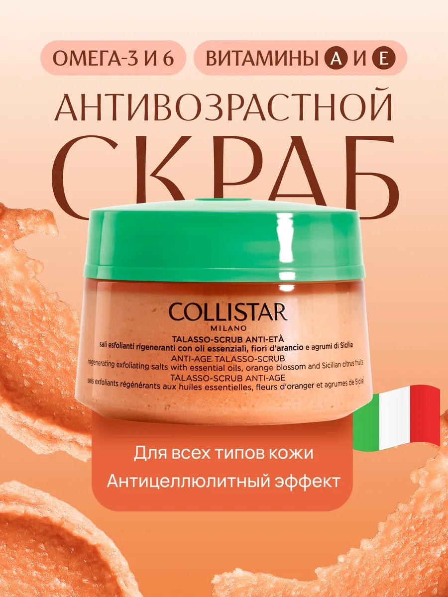 | Полное наименование товара | ANTI-AGE TALASSO-SCRUB 300 gr / COLLISTAR Талассо-скраб антивозрастной Anti-Age Talasso-Scrub |