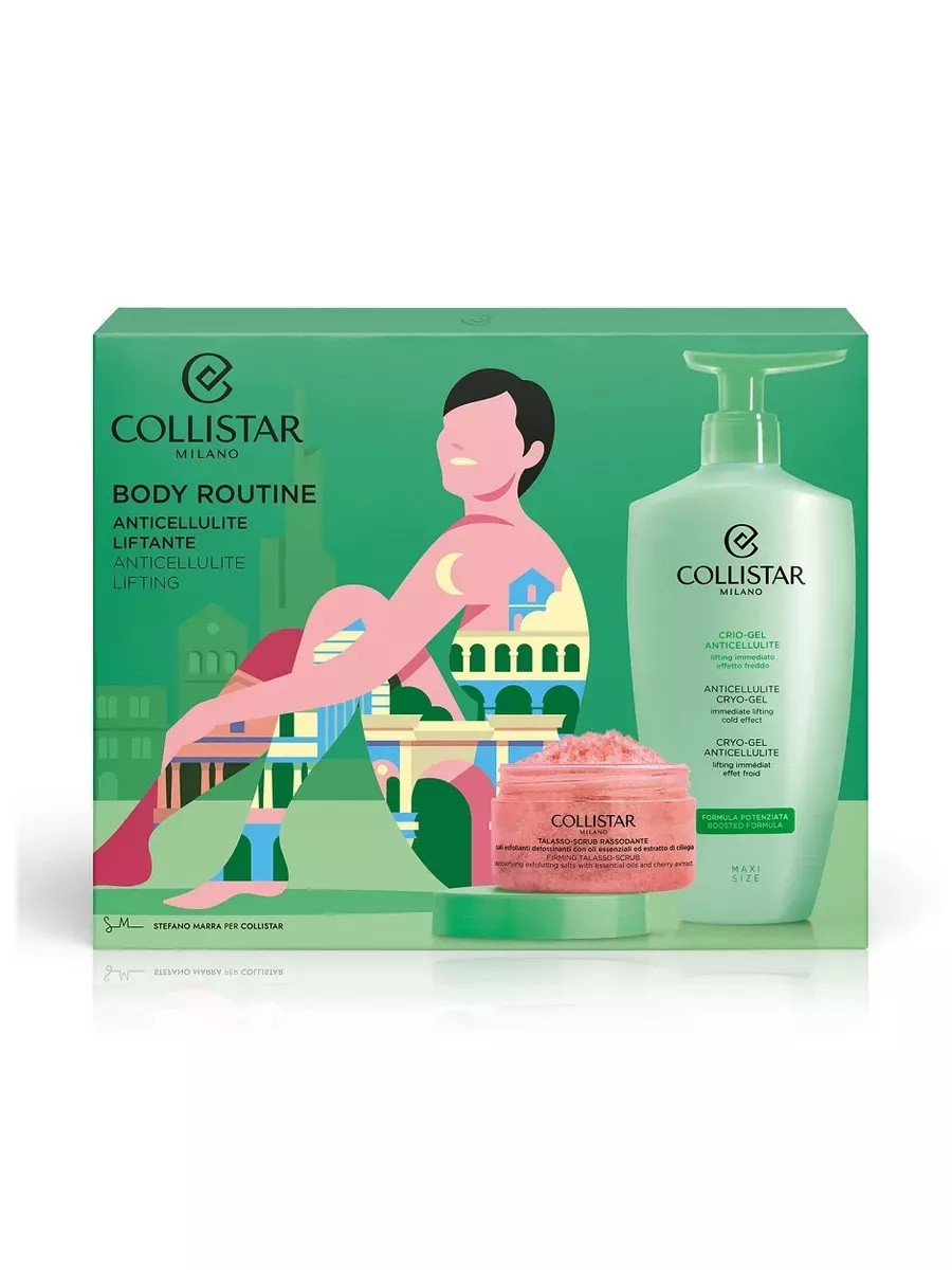 Сollistar предлагает Набор для тела для подтягивания силуэта и борьбы с целлюлитом из двух предметов в косметичке. Этот выпуск лимитированной коллекции сделан в честь миланского происхождения фирмы Collistar и изображает на упаковке самые захватывающие виды города, обрамляя их элегантными женскими фигурами, прославляя вечную красоту Милана.