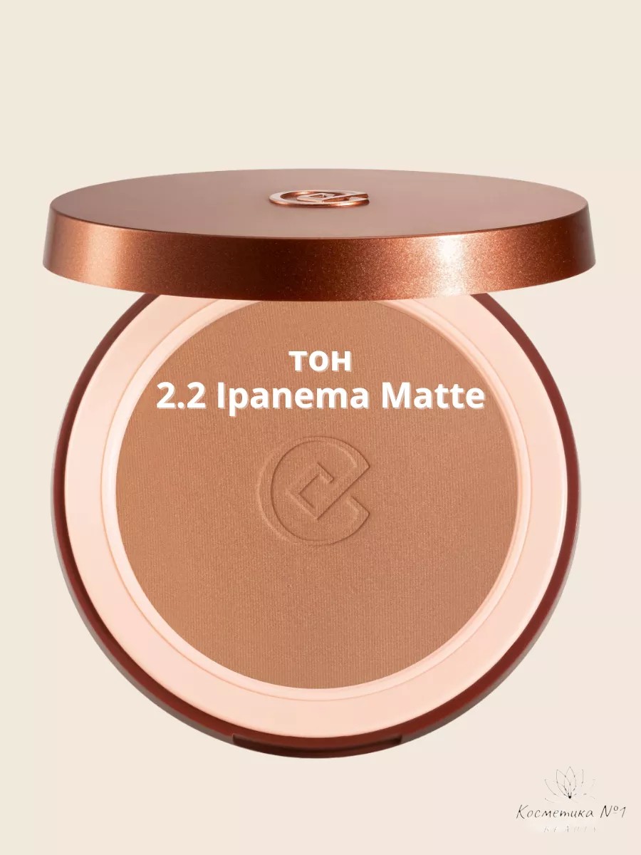 Ipanema Matte Terra Abbronzante Effetto Seta Silky Effect Bronzing Powder, Shade 2.2. A unique version of Collistar's iconic makeup product, it gives skin a healthy, radiant, and natural color year-round. This bronzer combines makeup color with a formula containing ingredients in appropriate doses, such as sericin from Lake Como, which moisturizes and supports the creation of a protective barrier against pollution. Additionally, an anti-digital ingredient protects the skin from oxidation and aging caused by blue light from digital devices. The consistency is silky, sensual, invisible, and buildable thanks to an exclusive dusting process of pollen contained within, guaranteeing easy application and blending for a tanned skin effect. The Silky Effect Bronzer formula is oil-free, sweat-resistant, safe, and effective for all skin types, including combination and very sensitive skin. Dermatologically and ophthalmologically tested. Will not clog pores.