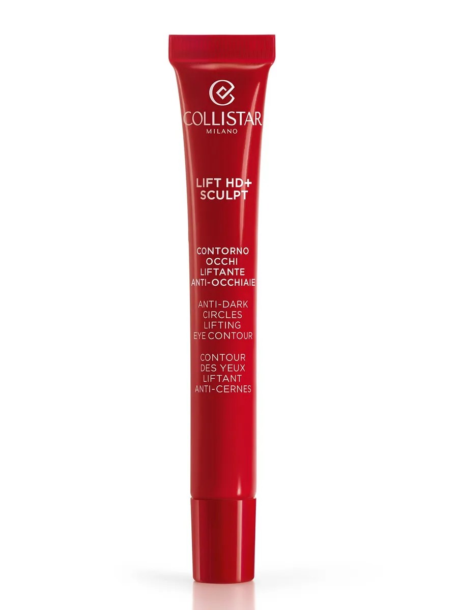 Collistar's ultra-lifting eye cream, Lift HD+ Sculpt Anti-Dark Circles Lifting Eye Contur, targets puffiness and dark circles with an immediate lifting effect on the skin around the eyes and maintains its targeted regenerating, restorative, and rejuvenating effect over the long term. Its formula combines the HD Lift complex with other ingredients to lift, reshape, and correct the eye contour, giving it new radiance and freshness, reducing wrinkles, tightening the eyelids, and giving the treated areas a youthful, healthy appearance. The cream corrects age spots thanks to its pink texture, which minimizes age spots and the appearance of bags, dark circles, and fine lines.