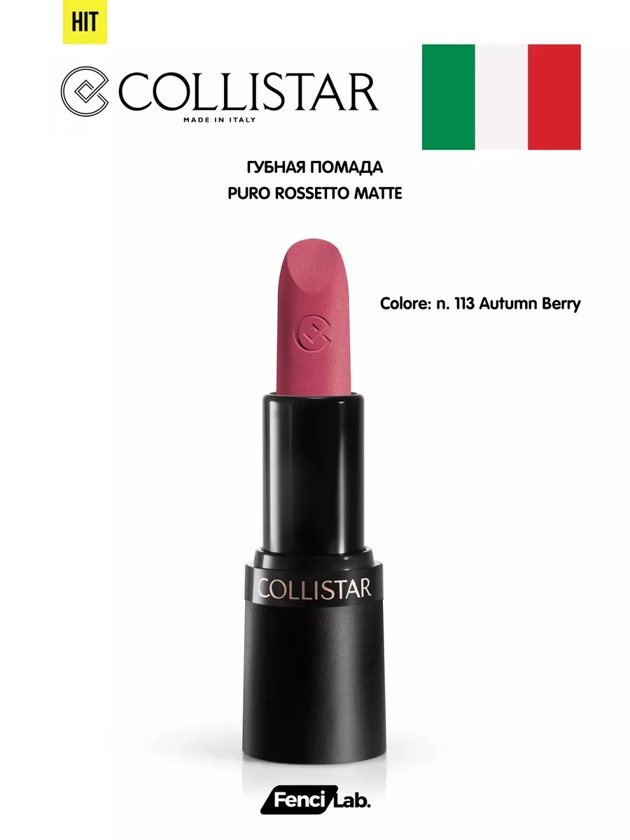 После ошеломительного успеха Puro Rossetto, который совмещает макияж и уход за кожей, обеспечивая цвет, комфорт, увлажнение и защиту, появилась новая версия с матовым покрытием. Благодаря усовершенствованной формуле последнего поколения, Puro Rossetto Matte обволакивает губы ультратонкой пленкой, раскрывая всю интенсивность пигментов, отобранных в соответствии со строгими стандартами Collistar Clean Research. Стойкий эффект гарантирует мягкость и увлажнение губ.Кремовая, тающая и бархатистая текстура помады обладает чувственной и комфортной формулой. Легко наносится и имеет наконечник особой формы, что позволяет идеально обрисовывать контуры губ. После нанесения помада сохраняет губы увлажненными и защищенными, обеспечивая комфортную фиксацию с интенсивным и полным матовым эффектом.Матовая губная помада Puro создана на основе полностью устойчивого итальянского активного ингредиента - экстракта винограда Альянико, который реструктурирует, разглаживает и увлажняет, стимулирует синтез гиалуроновой кислоты, защищает и восстанавливает губы. Эксклюзивные микросферы гиалуроновой кислоты повышают увлажняющую эффективность помады, предотвращая высыхание губ с течением времени. Подходит для веганов, не содержит минеральных масел и обеспечивает эффективное и чистое* действие макияжа.