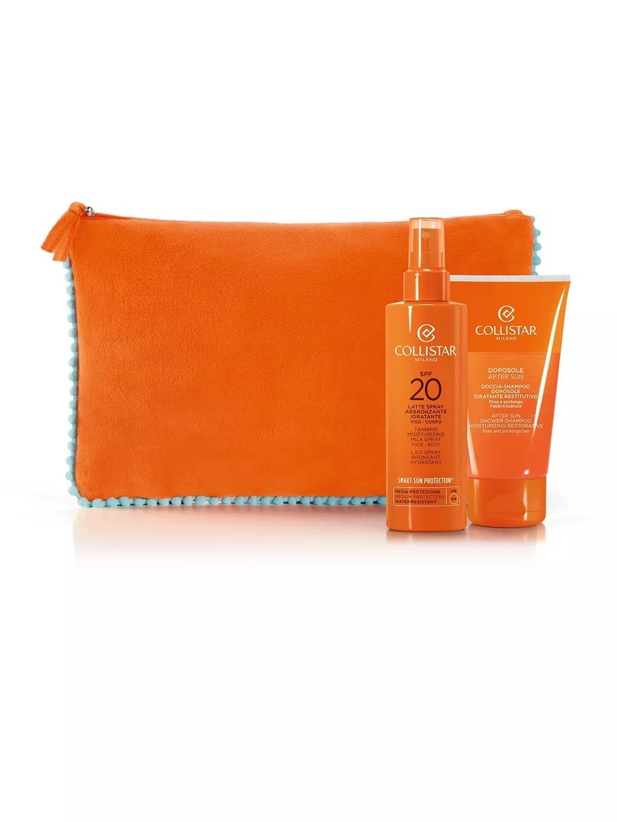 Collistar offers a two-piece tanning body care set in a cosmetic bag.