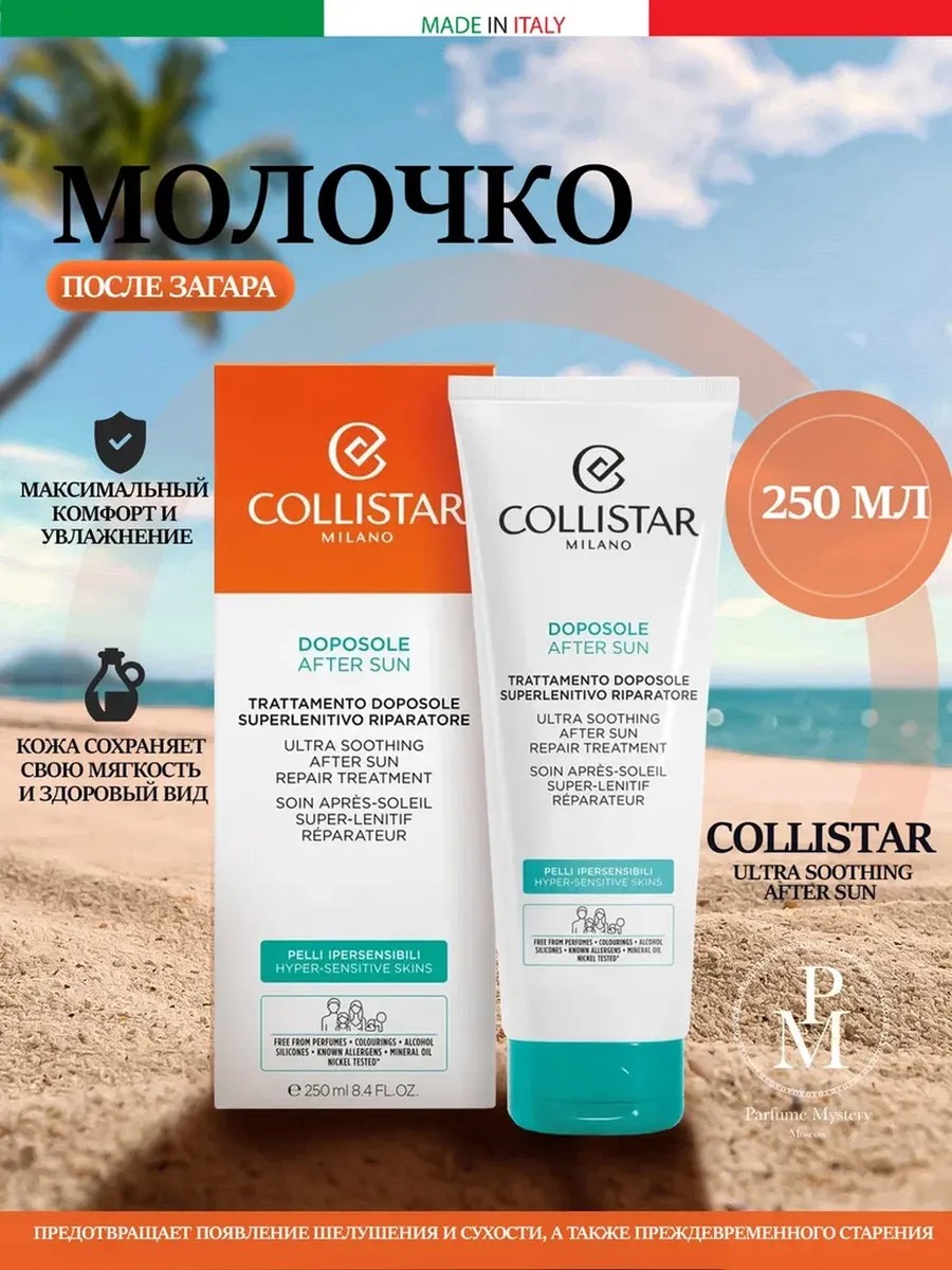 After sunbathing, our skin requires special care to ensure maximum comfort and hydration. This is especially important for sensitive skin. Collistar's experts, with these needs in mind, have developed a superb product: Ultra Soothing After-Sun Milk for the face and body for hypersensitive skin. Its delicate formula with carefully selected ingredients provides gentle and effective recovery after sun exposure. The product is enriched with soothing ingredients and plant extracts that quickly calm, nourish, soften the skin, and saturate cells with the optimal amount of moisture. As a result, skin maintains its softness and healthy appearance, preventing flaking, dryness, and premature aging.