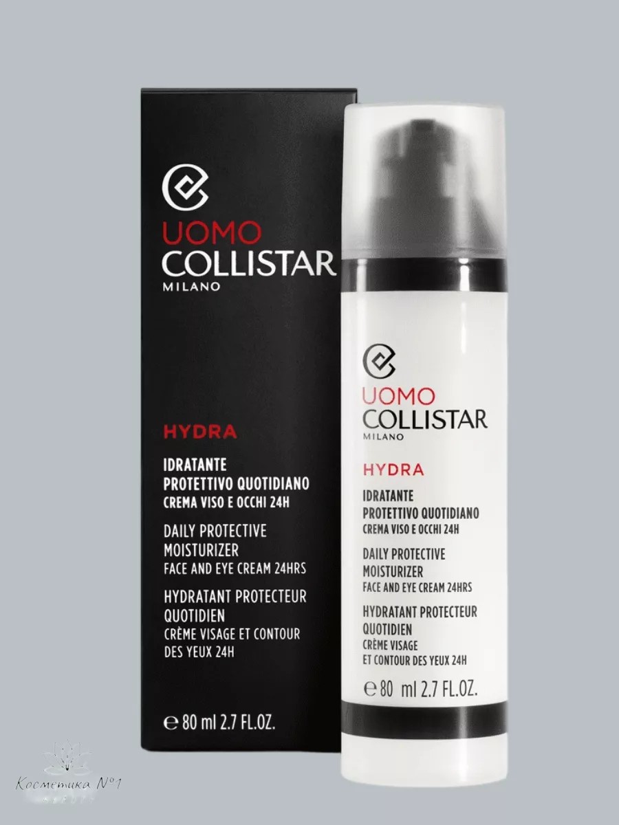 Nutrient-rich and soothing, Collistar Daly Protective Moisturizer 24h is specially formulated for men's skin and its unique characteristics. Its formula contains a complex of active plant ingredients that help protect the dermis from external influences, such as pollution, wind, sun, and other aggressive environmental factors, while also saturating cells with nutrients and life-giving moisture. These ingredients help moisturize the skin and prevent dryness and flaking. Antioxidants protect against free radicals and prevent premature aging. This product effectively combats puffiness, dark circles, and signs of fatigue. Its light, virtually weightless texture is easy to apply and absorbs instantly, leaving no greasy film or stickiness. It is free of silicone, alcohol, and animal-derived ingredients. It leaves behind a fresh, subtle scent.