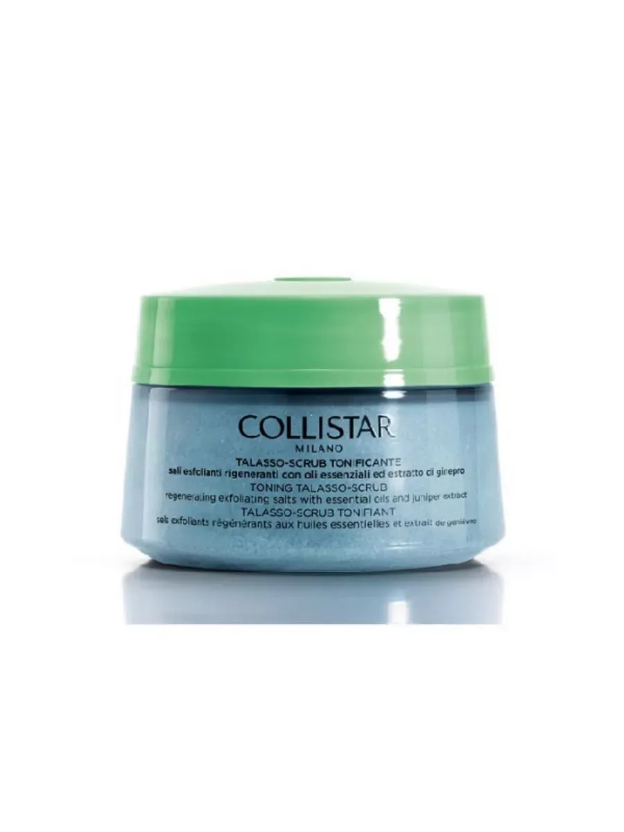 Collistar Toning Thalasso-Scrub with natural oils and juniper extract stimulates microcirculation, revitalizes skin tissue, removes toxins, and relaxes. The blend of Sardinian sea salt ("salt flower") is especially rich, which perfectly exfoliates and detoxifies the skin.
