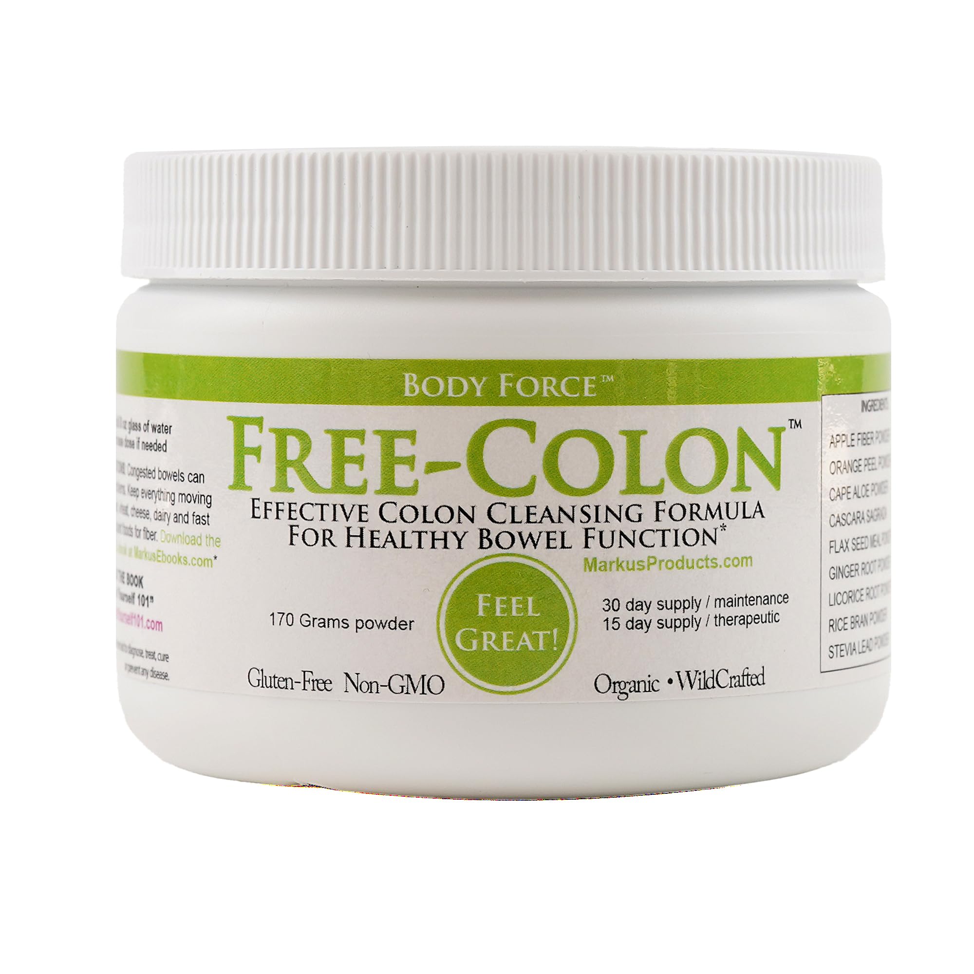 EFFECTIVE ELIMINATION: Features cascara sagrada to ensure smooth bowel movements and effective elimination of waste. ANTIOXIDANT SUPPORT: Fortified with citrus flavonoids that serve as powerful antioxidants, neutralizing harmful free radicals. .GENTLE FORMULA: Contains aloe and ginger to soothe the intestines and ease the digestive system during the detox process. RICH IN FIBER: Packed with fiber to cleanse your insides and effectively absorb toxins. COMPREHENSIVE CLEANSE: Free-Colon provides a complete colon cleansing experience, efficiently eliminating accumulated toxic waste.