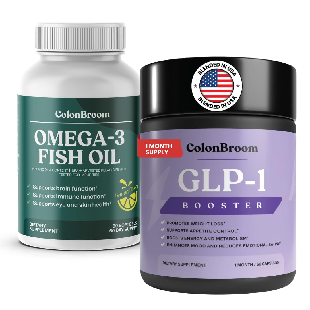 ColonBroom GLP-1 Weight Management Supplement for Women & Men (60 Capsules) + Omega 3 Fish Oil 2640 mg (60 Softgels) Lemon Flavor - Supports Gut Health Metabolic Wellness & Appetite Regulation