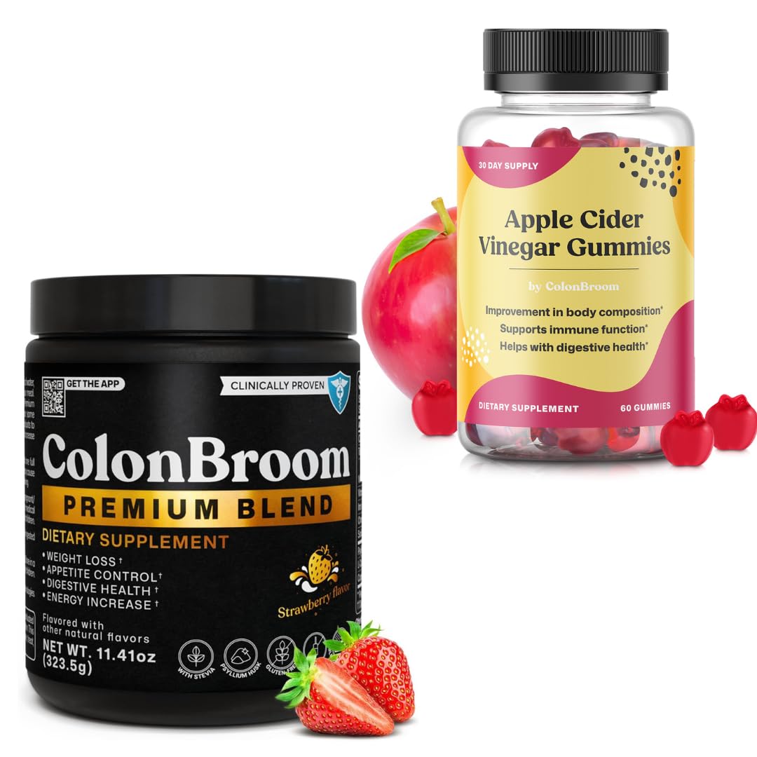 ColonBroom Premium Powder Supplement (Strawberry 50 Servings) + Apple Cider Vinegar Gummies for Women Supports Body Composition Boost Metabolism & Improves Digestive Wellness (60 Count)
