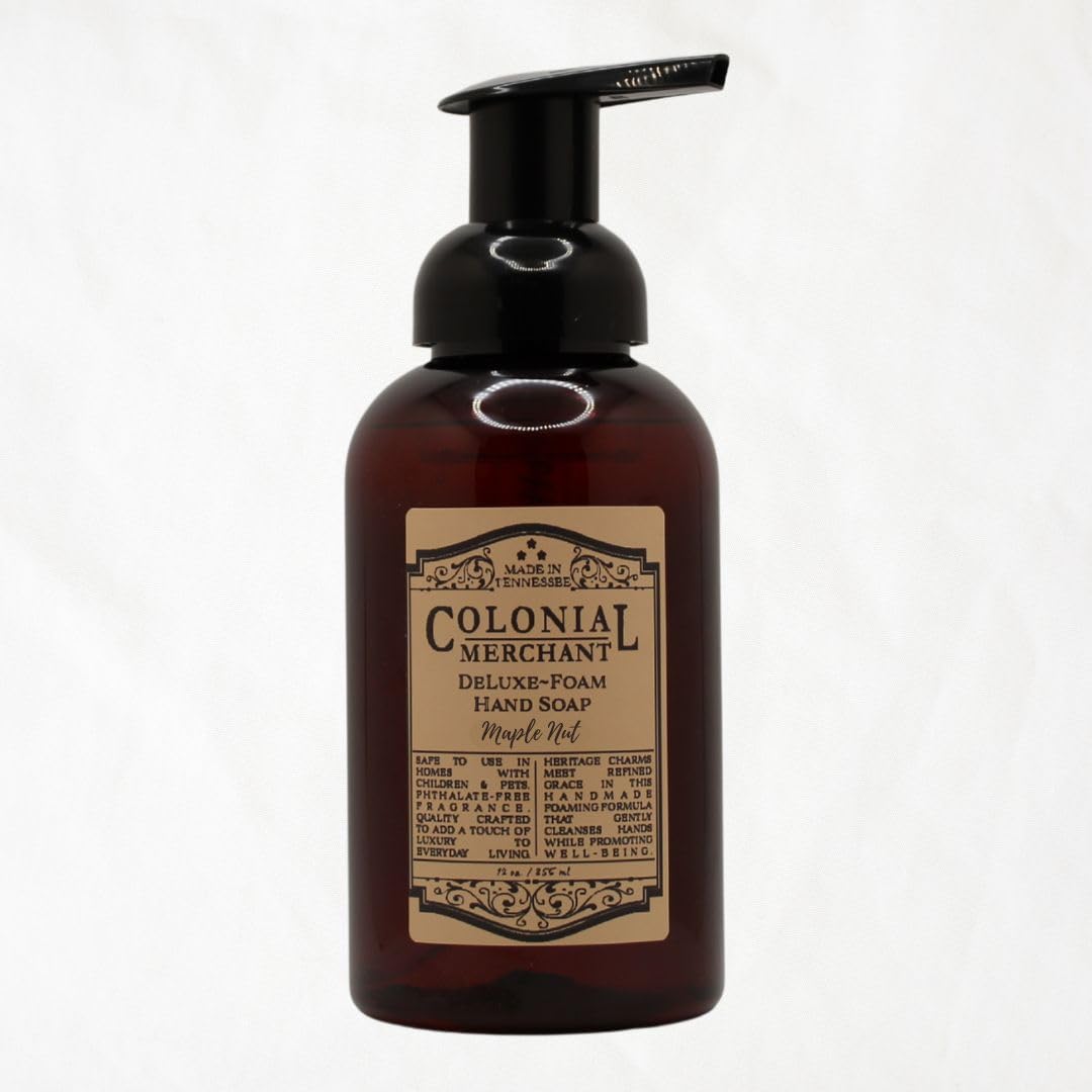 Colonial Merchant Foaming Hand Soap | Maple Nut Scent Maple Roasted Chestnut & Vanilla | Moisturizing Hand Wash | Paraben-Free Sulfate-Free | Eco-Friendly Bottle | Made in USA | 12oz