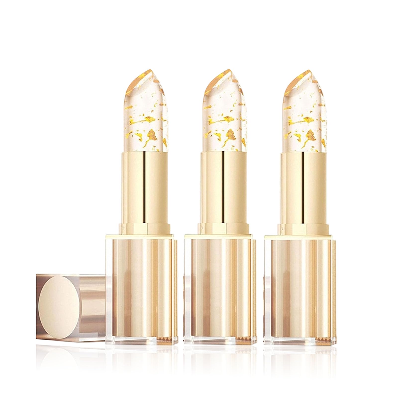 Color Changing Lipstick for Women Clear Color Changing Lipstick Transfer Proof avec feuille d'or baume l vres hydratant en cristal pour l vres s ches non collant (3pc)