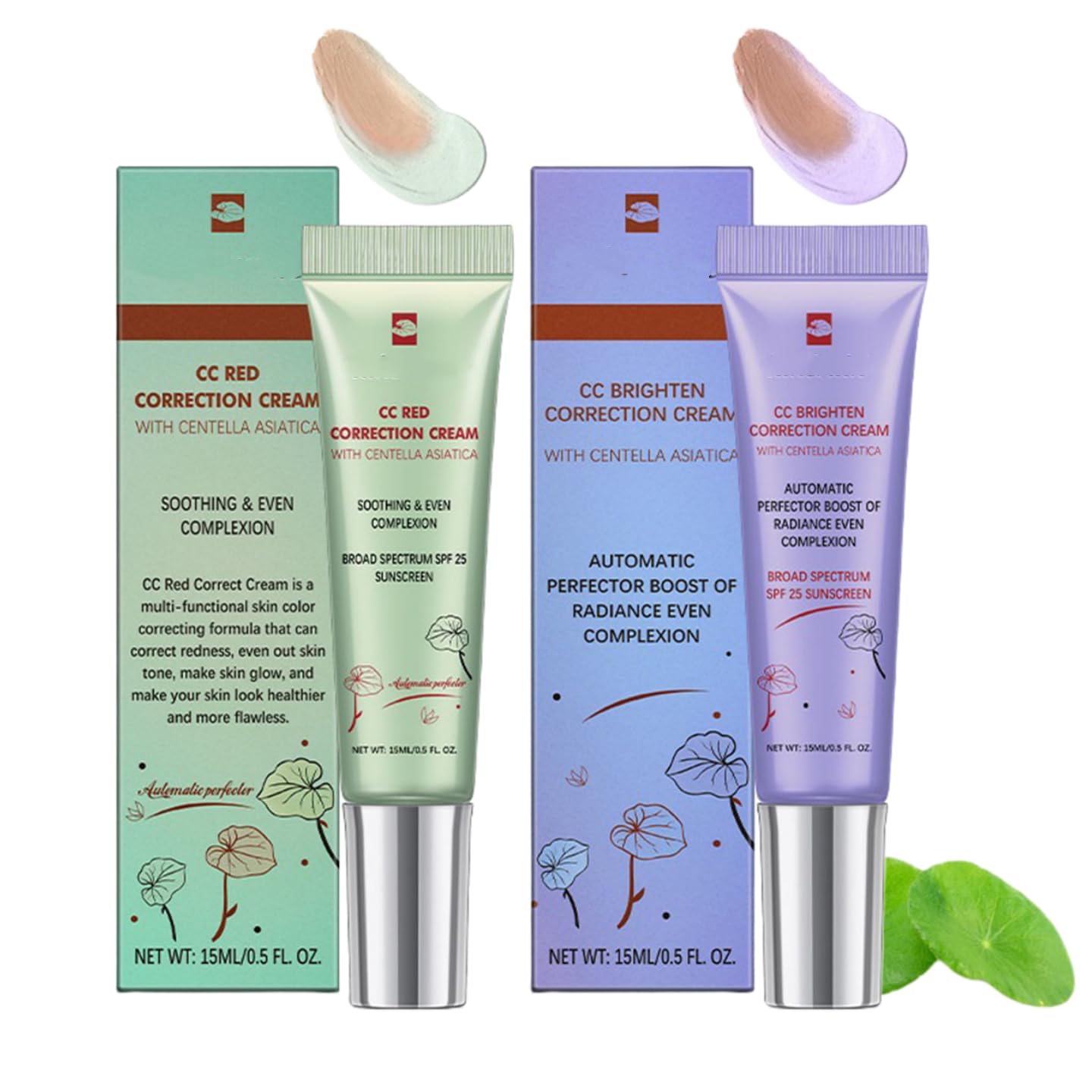 Color Correcting CC Cream - Centella Green and Purple Pigment Cream - Lightweight Foundation - Medium Coverage - Redness Reducing Face Makeup for a Glowing Complexion - Tone Perfecting Primer(2Pack)
