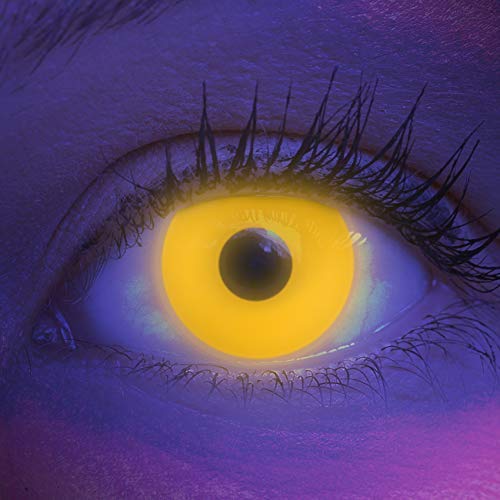 Farbige UV Kontaktlinsen 1 Paar Gelbe Schwarzlicht Glow Yellow Neon Farblinsen. Jahreslinsen Topqualität zu Halloween, Fasching, Fastnacht, Karneval inkl. Kontaktlinsenbehälter - Ohne Stärke