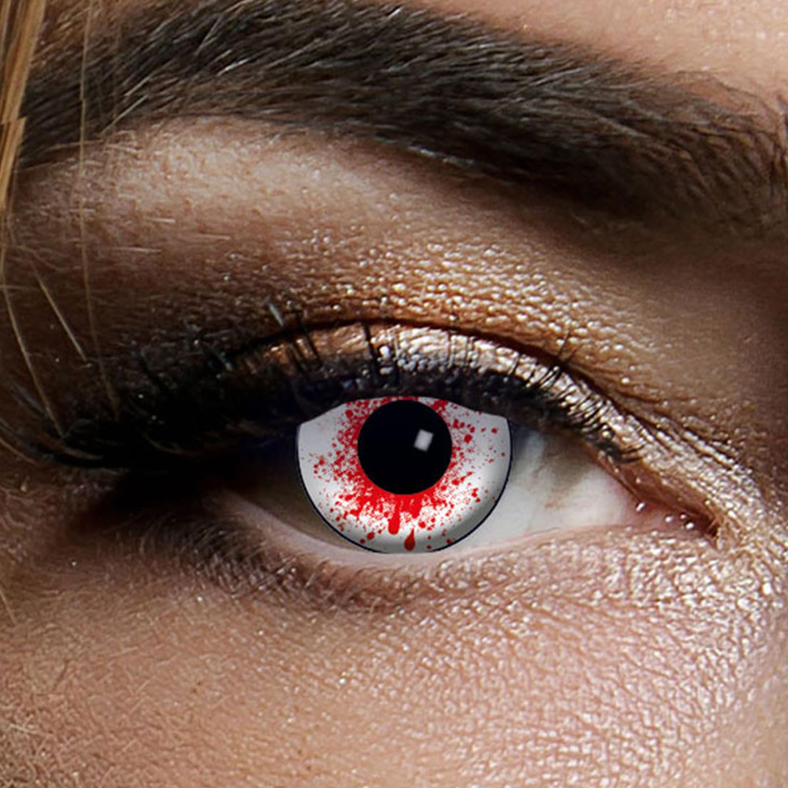 Farbige weiße Kontaktlinsen mit roten Blutspritzer, die Zombielinse, Bloodshot, Halloween Linsen,White Zombie Linsen, farbige Kontaktlinsen, Dracula