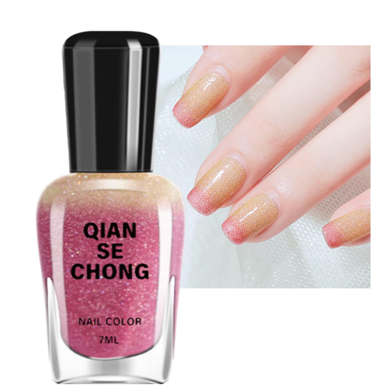 This colour changing nail polish can let you easily DIY all kinds of nail art at home. Made of non-irritating and safe ingredients, it does not harm your nails and skin. How to use: 1. Trim the nail surface, clean the cuticle, polish the nail surface and remove dust. 2. Apply a base coat or nail polish to avoid pigmentation. 3. Brush nail polish, the first layer of nail polish should be less to make the oil dry easily. Usually, it will dry within 5 minutes, depending on the external temperature. 4. Apply the second coat of nail polish. If you want to make the colour more obvious, you can apply one more layer to achieve the desired colour effect. Colour change: Discolouration is when the surface temperature of the nail is high, so it appears darker, and the surface temperature of the nail is low, so it appears lighter. If you want to see the colour change, you can touch cold or warm water after 2~3 coats and drying to see the colour change. Specification: Product Type: Colour Changing Glitter Nail Polish Net Content: 7ML Shelf life: 3 years Package contents 1 Pcs Colour Changing Diamond Nail Polish NOTE: 1.Due to different temperature or sunlight conditions, the colour of the polish may be slightly different from the picture, not the colour difference between the product itself and the picture. 2.Only when the temperature of the fingertip and the fingertip is different, it will show different colours. If the temperature remains the same, the colour of the nail polish will not change. 3. If skin abnormalities occur, discontinue use. 4.Please keep them out of the children's reach. DIRECTIONS Trim the nail surface, clean the cuticle, polish the nail surface and remove dust. Apply a base coat or nail polish to avoid pigmentation. Brush nail polish, the first layer of nail polish should be less to make the oil dry easily. Usually, it will dry within 5 minutes, depending on the external temperature. Apply the second coat of nail polish. If you want to make the colour more obvious, you can apply one more layer to achieve the desired colour effect. Touch cold or warm water after 2~3 coats and drying to see the colour change.?Unique Gift for Nail Beginner?This colorful nail varnish can be matched with various clothing, suitable for various occasions and seasons.Brilliant gifts for a family member, nail art starter or friend for birthdays, anniversaries, Valentine’s Day, Mother’s Day, Halloween, Thanksgiving Day, Christmas, or other festivals. This is a fantanstic, beautiful, unique gift that will be loved by all who receive it. ?Fast drying?This glitter nail polish is very easy to apply. No etching or chips. Fast drying formula. Allows you to quickly get a stylish nail colour when you go out and about. ?Long-Lasting & High Gloss Shine?This long -lasting chip-resistant shimmer nail polish can keep your nails for up to 21 days. In order to get the best results, please use our basic gel and top paint. ?Healthy & Safety?Color change nail polish is made of environment-friendly. High-quality colour changing nail polish can solve most problems of bubbles, warps, peeling. No harsh ingredients or adhesives that lead to damaged nails. ?Colour Changing Diamond Gel Nail Polish?Temperature change nail polish will show different fascinating gel polish colours according to the temperature of your body and environment, you can experience two different nail art. The combination of warming nail polish and diamond glitter makes you nail sparkle and colourful for different occasions!.