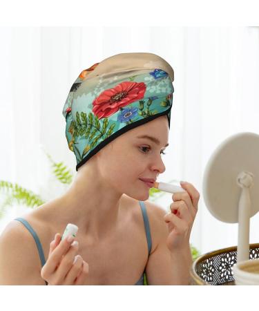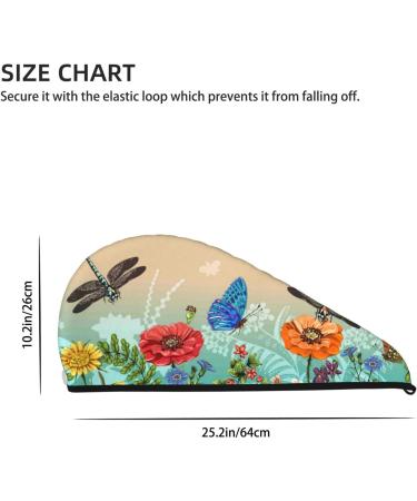Product Details: Material: Coral velvet fabric,100% polyester Package Included: 1pc Coral Velvet Quick Dry Hair Cap Size: 25.2 Inches * 10.2 Inches ( 64CM * 26CM ) Applicable People:Both men and women can be used. Pattern:Colorful Plants And Insects Washing Tips: Hand washable and machine washable. Specificities: This towel for hair wrap features a button design that is simple to use and absorbs all the moisture from your wet hair without getting in the way of your shoulders and upper back, making it easy to complete your daily tasks while your hair dries. This hair cap with button is lightweight and compact, easy to carry around. It can be used for gym, yoga, travel, beach, outdoor, sports, camping, home, hotel, pool party and professional hair salon. These drying hair wrap towels make a thoughtful gift for Mother's Day, Father's Day, Christmas and any other occasion. Perfect for mums, dads, adult men and women and anyone who loves to travel or enjoys convenience. Warm Tips: Before first use, please wash separately from other fabrics Do not use bleach, rollers, irons and softeners Premium Service: If you have any other requirement, please tell us by e-mail when you order or receive this item. We will reply within 24 hours.?Wide Usage? These hair turbans for wet hair are lightweight, compact in structure, and easy to carry. They can be used for gyms, yoga, travel, beaches, outdoors, sports, camping, homes, hotels, pool parties, and professional hair salons. ?Easy to Use? Our hair towel wrap has a button and an elastic loop on the back to wrap the head wrap securely. You need to put wet hair into our hair towel and then fasten the button. ?Suitable for Most Hair Types? The hair drying towel measures 25.2 inches (length) x 10.2 inches (width), suitable for most head sizes and different hair types, such as curly hair, straight hair, long hair, short hair, or thick hair. ?Hair Protection? The microfiber hair towel can help hair dry naturally, reduce the use of blow dryers, and avoid hair dryness, curling, and damage, making it healthier and smoother. ?Absorbent and Quick-Drying? The super absorbent hair towel is made of high-quality polyester material. It has strong water absorption and dries quickly. It will dry the water on the hair faster and more thoroughly without dripping.