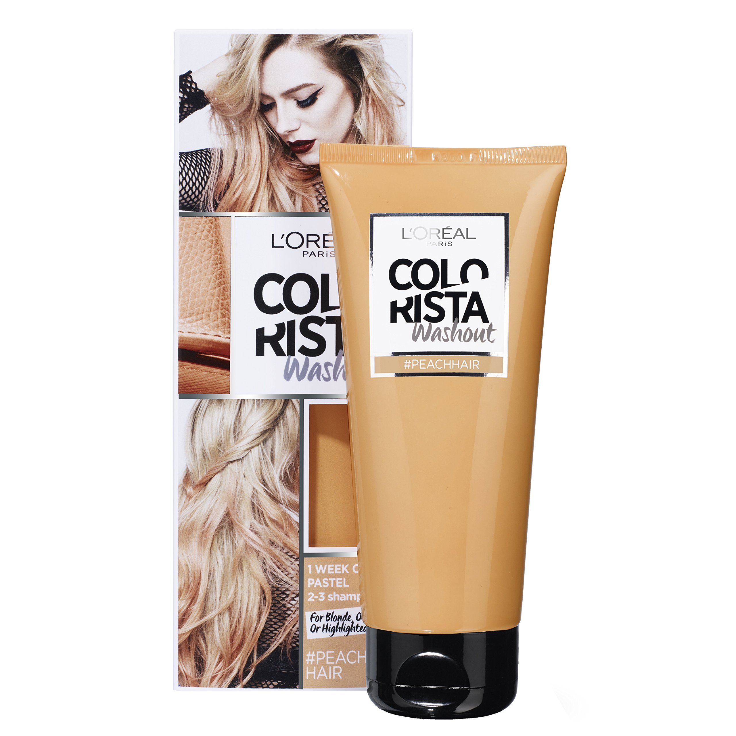 : Discover Colorista Wash-Out PeachHair, a temporary color that lasts 2 to 3 shampoos and gradually fades until your original blonde, ombré, or balayage color returns. This pastel pink shade is visible on blonde, ombré, or highlighted hair. Please note that it will not be visible on dark hair and may last slightly longer depending on hair porosity. Coloring cream-gel ingredients: AQUA WATER, CETEARYL ALCOHOL, BEHENTRIMONIUM CHLORIDE, AMODIMETHICONE, CETYL ALCOHOL, C12-15 ALKYL BENZOATE, GUAR HYDROXYPROPYLTRIMONIUM CHLORIDE, HYDROXYETHYLCELLULOSE, SODIUM CHLORIDE, SODIUM HYDROXIDE, TRIDECETH-6, CHLORHEXIDINE DIGLUCONATE, FUMARIC ACID, ISOPROPYL ALCOHOL, BASIC ORANGE 31, BASIC YELLOW 87, BASIC RED 51, CITRIC ACID, CETRIMONIUM CHLORIDE, (FIL C192631 1) P.when('A').execute(function(A) { A.on('a:expander:toggle_description:toggle:collapse', function(data) { window.scroll(0, data.expander. expander[0].offsetTop-100) }) }) Instructions: Leave the color on for 15 minutes, or up to 20 minutes for a more intense and longer-lasting result. For a personalized look, apply different colors to your hair. See moreThis kit contains: 1 tube of 80ml Washout Temporary Color, 2 pairs of disposable gloves, and instructions. Directions for use: Leave the color on for 15 minutes, or up to 20 minutes for a more intense and longer-lasting result. For a personalized look, apply different colors to your hair. Result: Apply the color to brown hair, or to lightened hair for greater intensity. Pastel colors are visible on blonde, ombré, or highlighted hair. Temporary color that fades in 2-3 shampoos. An ammonia-free formula with intense pigments in a conditioning base. Semi-permanent hair color for 1 week - Peach.Description du produit Découvrez le Wash-Out Colorista PeachHair, une coloration temporaire qui dure de 2 à 3 shampooings et s'estompe progressivement jusqu'au retour du blond, ombré ou balayage initial. Cette couleur rose pastel est visible sur cheveux blonds, ombrés ou méchés. Attention, elle ne sera pas visible sur des cheveux foncés et peut durer un peu plus longtemps selon la porosité du cheveu. Ingrédients Crème-gel colorante :AQUA WATER, CETEARYL ALCOHOL, BEHENTRIMONIUM CHLORIDE, AMODIMETHICONE, CETYL ALCOHOL, C12-15 ALKYL BENZOATE, GUAR HYDROXYPROPYLTRIMONIUM CHLORIDE, HYDROXYETHYLCELLULOSE, SODIUM CHLORIDE,SODIUM HYDROXIDE, TRIDECETH-6, CHLORHEXIDINE DIGLUCONATE, FUMARIC ACID, ISOPROPYL ALCOHOL, BASIC ORANGE 31, BASIC YELLOW 87, BASIC RED 51, CITRIC ACID, CETRIMONIUM CHLORIDE, (FIL C192631 1) P.when('A').execute(function(A) { A.on('a:expander:toggle_description:toggle:collapse', function(data) { window.scroll(0, data.expander. expander[0].offsetTop-100) }) }) Mode d'emploi Laisser poser la couleur 15 minutes, ou jusqu'à 20 minutes pour un résultat plus intense et plus durable. Pour un look personnalisé, appliquer différentes couleurs sur vos cheveux. Voir plusCet Etui contient : 1 tube de Couleur Temporaire Washout 80ml, 2 paires de Gants mono-usage et un mode d'emploi. Conseil d'utilisation : Laisser poser la couleur 15 minutes, ou jusqu'à 20 minutes pour un résultat plus intense et plus durable. Pour un look personnalisé, appliquer différentes couleurs sur vos cheveux. Résultat : Appliquer la couleur sur des cheveux bruns, ou sur des cheveux éclaircis pour plus d'intensité. Les couleurs pastel sont visibles sur cheveux blonds, ombrés ou méchés. Couleur Temporaire qui s'estompe en 2-3 shampooings. Une formule sans ammoniaque aux pigments intenses dans une base soin. Coloration Semi-permanente 1 Semaine - Pêche.Colorista Washout 1 Semaine Couleur Temporaire pour Cheveux Pêche Brun 80 ml (Lot de 1)