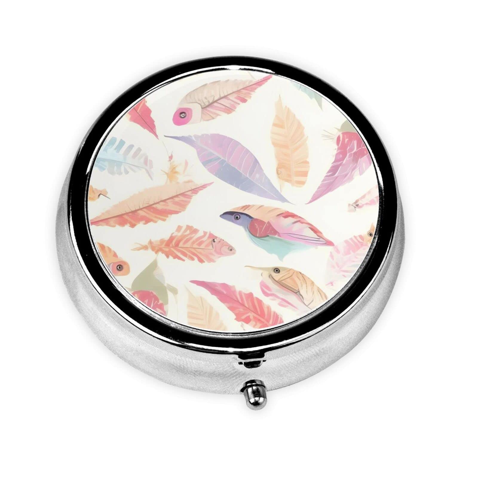 Coloured Feathers Round Mini Pill Box : Our Pill Box Is Made Of Metal Plated With Iron To Resist Daily Wear And Tear And Prolong Its Life.2.0 X 2.0 X 0.7 Inches (Approx. 4.6 X 4.6 X 1.8 Centimeters), This Round Mini Pill Box Is Compact And Lightweight, With 3 Plastic Compartments And A Hinged Closure Inside. The Round Mini Pill Box Takes Up Little Space And Can Be Carried In Your Pocket Or Purse, Perfect For Traveling.
