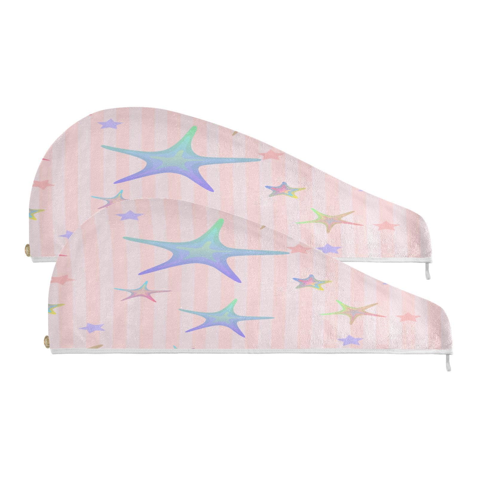 Coloured Stars Dry Hair Cap 2 Piece Quick Drying Towel Set with Button Headband Super Absorbent Soft & Comfortable