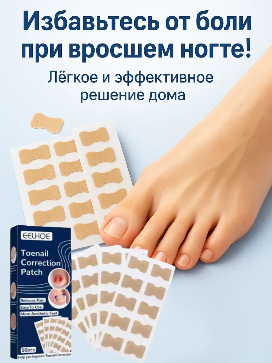 Коррекционные пластыри для ногтей на ногах — эффективное средство для быстрого и безопасного решения проблемы вросшего ногтя без операции. Пластырь аккуратно фиксируется на поверхности ногтя, создаёт мягкое натяжение и помогает изменить направление его роста, предотвращая врастание и деформацию.
