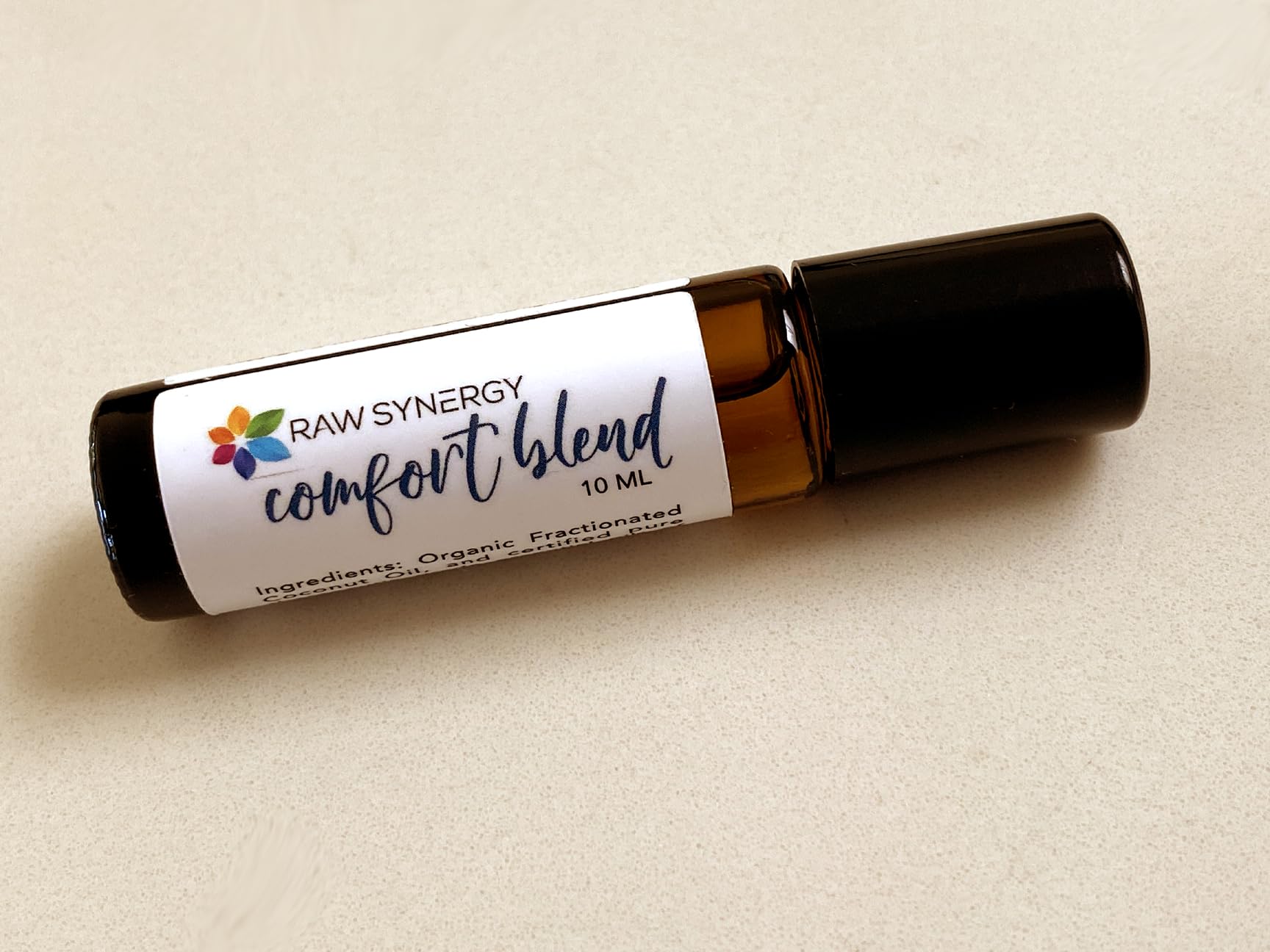 A proprietary blend of fifteen certified pure essential oils in a soothing base of organic, 100 virgin, fractionated coconut oil, provides a calming effect on the body. Comfort Blend was created by Raw Synergy for a relative's constant back pain. Even with the strongest of medications, the relative only experienced partial relief, but with the addition of Comfort Blend, her pain was alleviated. Raw Synergy began sharing this unique and effective formula with friends and family, who also experienced relief from their aches and pains. After many positive reactions, benefits and success stories, along with a definite need in the marketplace, Comfort Blend was bornContains: Organic Fractionated Coconut Oil, and certified pure therapeutic grade essential oils of Peppermint, Lemongrass, Basil, Clove, Cypress, Ginger, Roman Chamomile, Siberian fir, Eucalyptus, Lavender, Thyme, Marjoram, Wintergreen, Clary Sage and Frankincense. For topical use only. Apply to desired area as needed. No dilution required. Calming effect, helps with pain and discomfort. Clean, herbal scent. 15 pure, theraputic essential oils, help ease pain, inflamation, disomfort, body aches. etc. Comfort Blend is created in the presence of a pain healing frequency of 174 Hz, and blessed by an energy healer. Relaxing, calming, comforting formula that provides a soothing effect on the body. Helps with bug bites. You're gonna love it. Stop the pain! 10ML Incredible proprietary blend of fifteen certified pure essential oils in a soothing base of organic, 100 virgin, fractionated coconut oil.