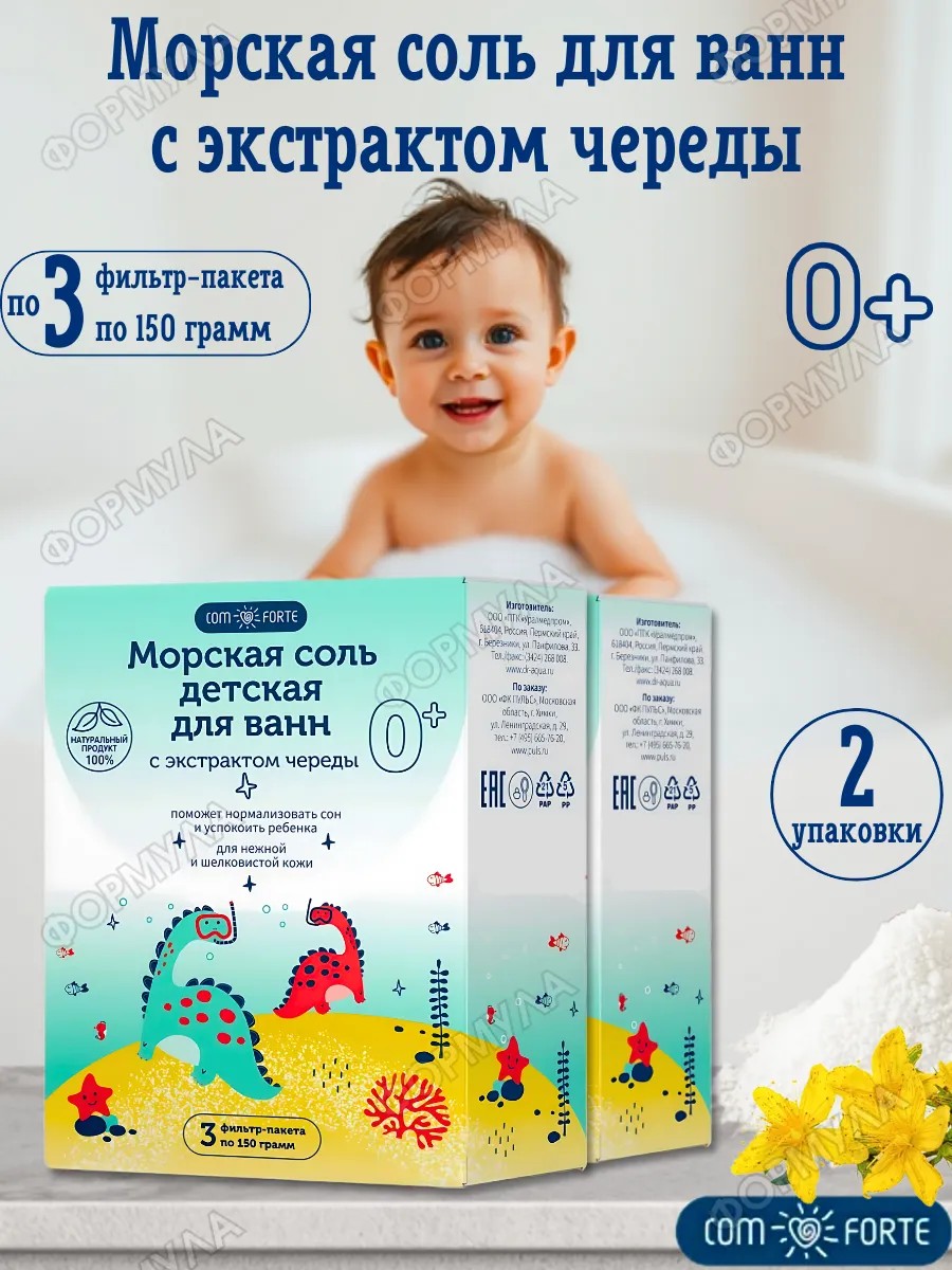 | Комплектация | Соль д/ванн детская 0+ ComForte (с экстр. череды) ф/п 150 г х3 ПУЛЬС*2шт |