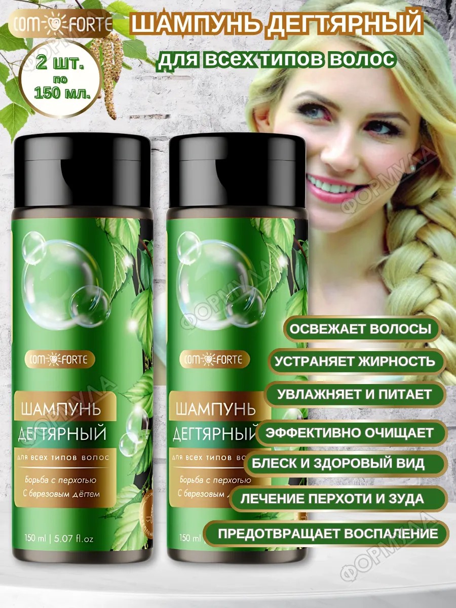 | Комплектация | Шампунь Дегтярный ComForte д/ всех типов волос (с берез дегтем) фл 150 мл; 2 шт |