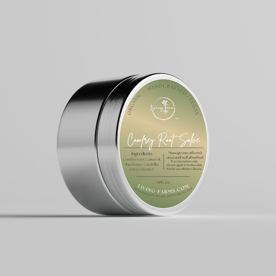 OUR QUALITY PROMISE: We take immense pride in our commitment to quality and sustainability. Our Comfrey Root Salve is meticulously formulated by a clinical herbalist using only organic or wildcrafted ingredients that are sustainably harvested in the USA. Each small batch is handcrafted to ensure optimal potency and effectiveness. We maintain strict standards with our vegan, non-GMO formula, keeping it free from chemicals, preservatives, and synthetic additives. As a cruelty-free product, we never test on animals, reflecting our dedication to ethical and conscious manufacturing practices. WHAT MAKES OUR SALVE SO SPECIAL: Crafted in small batches by our clinical herbalist, this fast-absorbing formula features a rich, smooth consistency without any greasy residue. At its core is a concentrated double extracted herbal infusion, maximizing the therapeutic potential of our premium botanicals. Our meticulous formulation process ensures each jar maintains the highest standards of quality and potency, carrying forward the traditional wisdom of herbal medicine. BENEFITS USES: Soothes minor skin irritations, supports skin recovery after minor scrapes and bruises, moisturizes dry rough skin, popular among gardeners for hands and joints, ideal for athletes' post-activity skin and muscle discomfort, helps minor aches, and supports natural healing. PURE SIMPLE INGREDIENTS: Wildcrafted Comfrey Root, Organic Castor Oil, Organic Shea Butter, Candelilla Wax, Full Spectrum Vitamin E.
