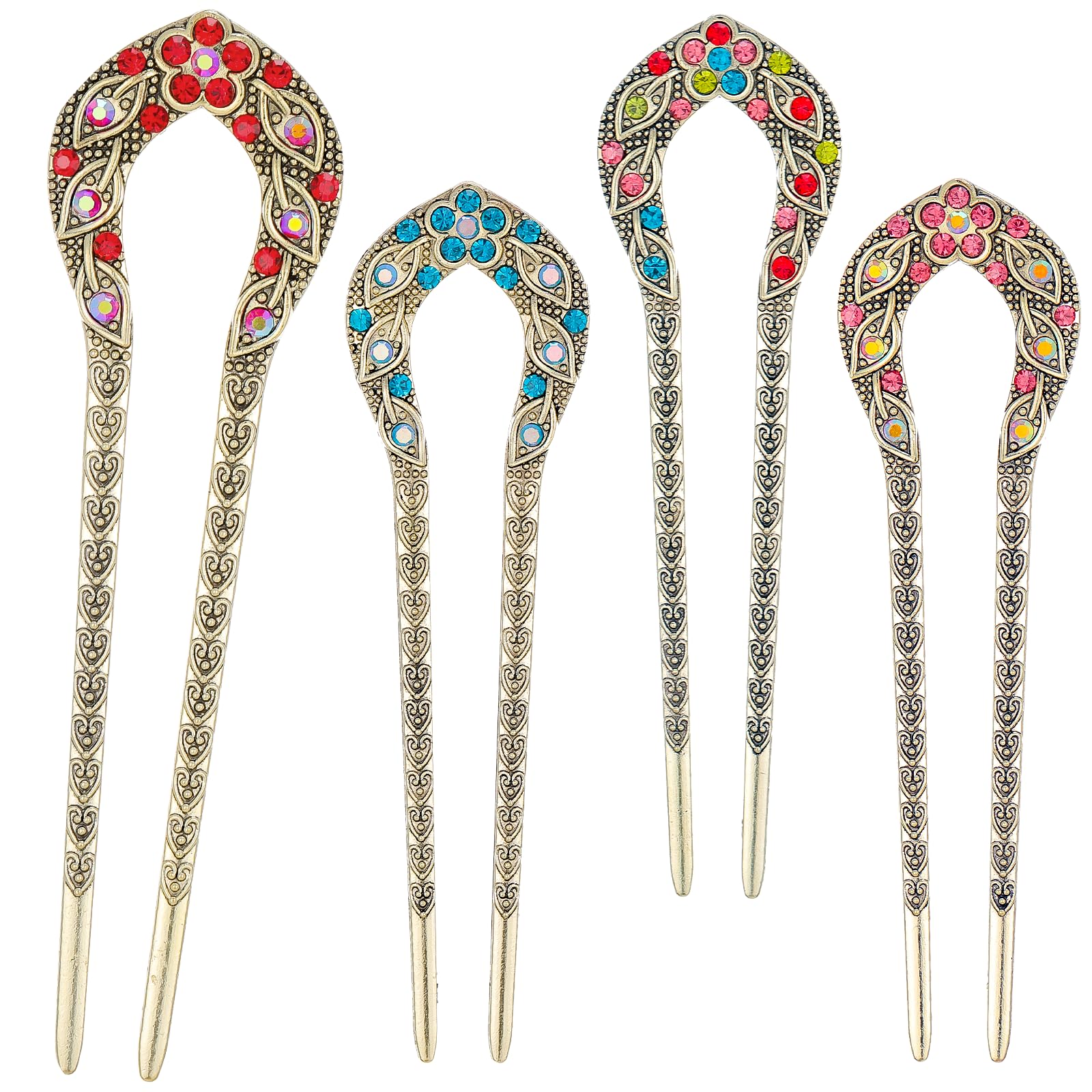 COMNICO 4 Pieces Hair Pins Metal U-Shaped Hair Forks Vintage Updo Hair Sticks with Rhinestone 2 Prong Bun French Hairpins Hairstyle Chignon Accessories for Women Girls Fine Thick & Long Hair Styling Category: Hairpin Color: Red, Blue, Colorful, Pink Material: Alloy Function: Chinese Style Alloy Classical Hairpin Simple Modern Bun Hanfu Tassel Ancient Costume Headdress Product Size: 4.5 × 1.35 × 0.24 inches/12.6 × 3.44 × 0.6 cm Packing: Bag Product Weight: 3.66 oz/ 103.9 g Packing List: 4 pcs x Hairpin Features 1. The metal material makes the hair chopsticks for women more durable, not easy to damage, and hair sticks for buns can be reused for many years. One end is open, hair updo accessories can be easily put in and fixed in the hair. 2. When using u pins for hair bun , put a bunch of hair into the opening of the U-shaped hair fork, and hair pins for buns turn the hair fork over so that the hair is clamped in the U-shaped groove. This design can provide a stable fixation and french twist hair tool is not easy to slip. 3. Due to hair styling pins simple and elegant appearance, the hairpins for fine hair is suitable for a variety of formal and informal occasions, such as work, school, weddings or other special events DIRECTIONS To use the COMNICO hair pins, gather a section of hair and insert it into the open end of the U-shaped hair fork. Turn the fork over so that the hair is clamped in the U-shaped groove, providing a stable fixation. These hairpins are suitable for various formal and informal occasions, such as work, school, weddings, or special events.?Lovely Gift?You will receive 4 metal u shaped hair pins for styling in different colors, hair pins for thick hair are sufficient quantity to meet your daily use and sharing. These bun clip is great gifts for friends, sisters, girlfriends, wives and moms, you can wear hair chopsticks for women when attending parties or other celebrations, and gold hair pin are also suitable for daily life. ?Applicable Occasions?Wear hair picks for women to work, school, daily wear, weddings, parties, meetings, dates, banquets, shopping, casual occasions, etc., you can quickly and easily design hairstyles, this french pin is loved by ladies and girls and is in line with today's trends. ?Easy to Use?Magic hair combs for women accessories are very simple to use and hair pins for buns can be used in a variety of ways. Wearing them on your head can keep your hair in place all day long, firmly fixed without slipping. The open space on the top of these hairpins can fix the hair, while the reinforced legs in the middle can firmly fix the hair in place. Hair loop styling tool is very suitable for long hair, curly hair, sparse or thick hair. ?Metal Material?The metal hair clips for styling is made of high-quality alloy material, flat hair clips for thick hair are durable and inlaid with natural pearls, reflecting light and sparkling under the light. The retro design adds a high-end and simple feel to your hairstyle, making you look more charming no matter what kind of style you match hair pins for women with. ?U-Shaped Bun Hairpin?If you are still worried about how to design your bun beautifully, if you want to quickly design a hairstyle with a high-end feel, then don't miss this french hair pins for women! The unique design can easily help you create a perfect bun hairstyle, and hair sticks for buns are very convenient to use. The hair clips for women are simple and easy-to-use multi-functional styling solution.