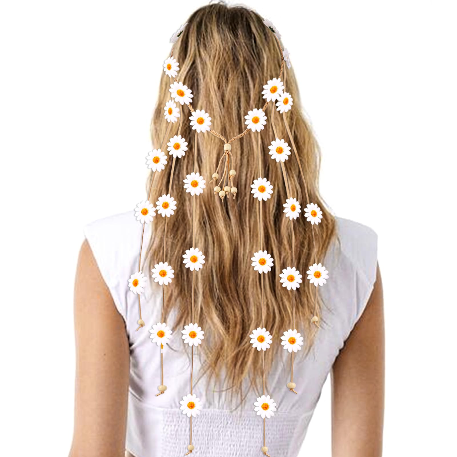 Specific parameters Category: Hairbands Color: White Material: Polyester Function: daisy hairband headdress, sun wreath hairband Product size: 25.2 × 12.6 × 0.39 inches / 64 × 32 × 1 cm Packaging: bag Packing list: 1pcs × hair tie