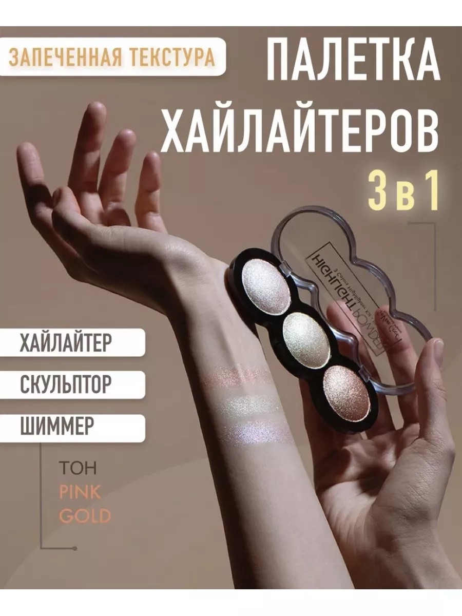 Компактная палетка 3в1 Палетка хайлайтеров для лица