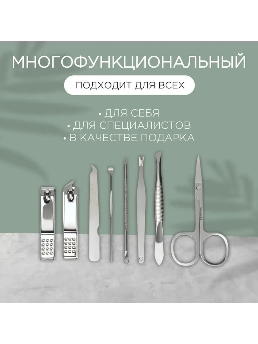 Представляем вашему вниманию универсальный маникюрный набор, созданный для ухода за руками и ногтями. В комплект входит восемь необходимых инструментов, аккуратно размещенных в прочном пластиковом футляре ярко-зеленого цвета. Этот набор станет незаменимым помощником как дома, так и в путешествиях, обеспечивая быструю и качественную коррекцию и уход за ногтями. Каждый предмет выполнен из высококачественных материалов, что гарантирует долговечность и безопасность использования. Стильный и практичный дизайн футляра позволяет удобно хранить инструменты и брать их с собой в любое место. Благодаря компактным размерам и легкому весу, этот набор легко поместится в сумке или косметичке. Он идеально подходит для тех, кто следит за своим внешним видом и ценит удобство в уходе за руками. Регулярное использование такого набора поможет сохранить ногти в отличном состоянии, а руки — аккуратными и ухоженными. Сделайте заботу о себе приятной и простой с нашим функциональным маникюрным набором.