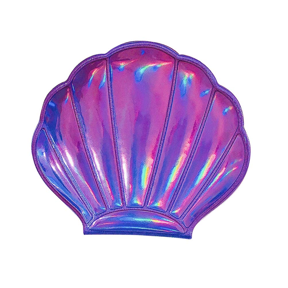 Shell Shape Mirror Double Sided Makeup Mirror PU Leather Compact Mirror Travel Makeup Mirror for Women Girls (Purple)