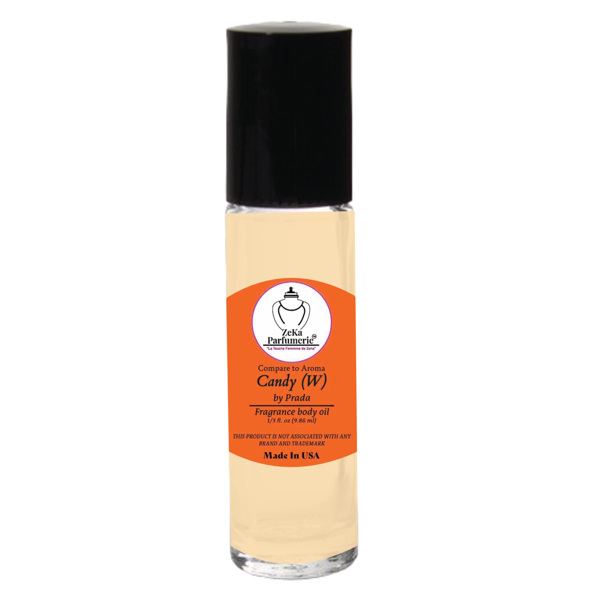 Compare to Aroma compatible with Prada Candy for Women Fragrance Body oil on 1/3 oz (9.86ml) Travel size Roll-On Botlle