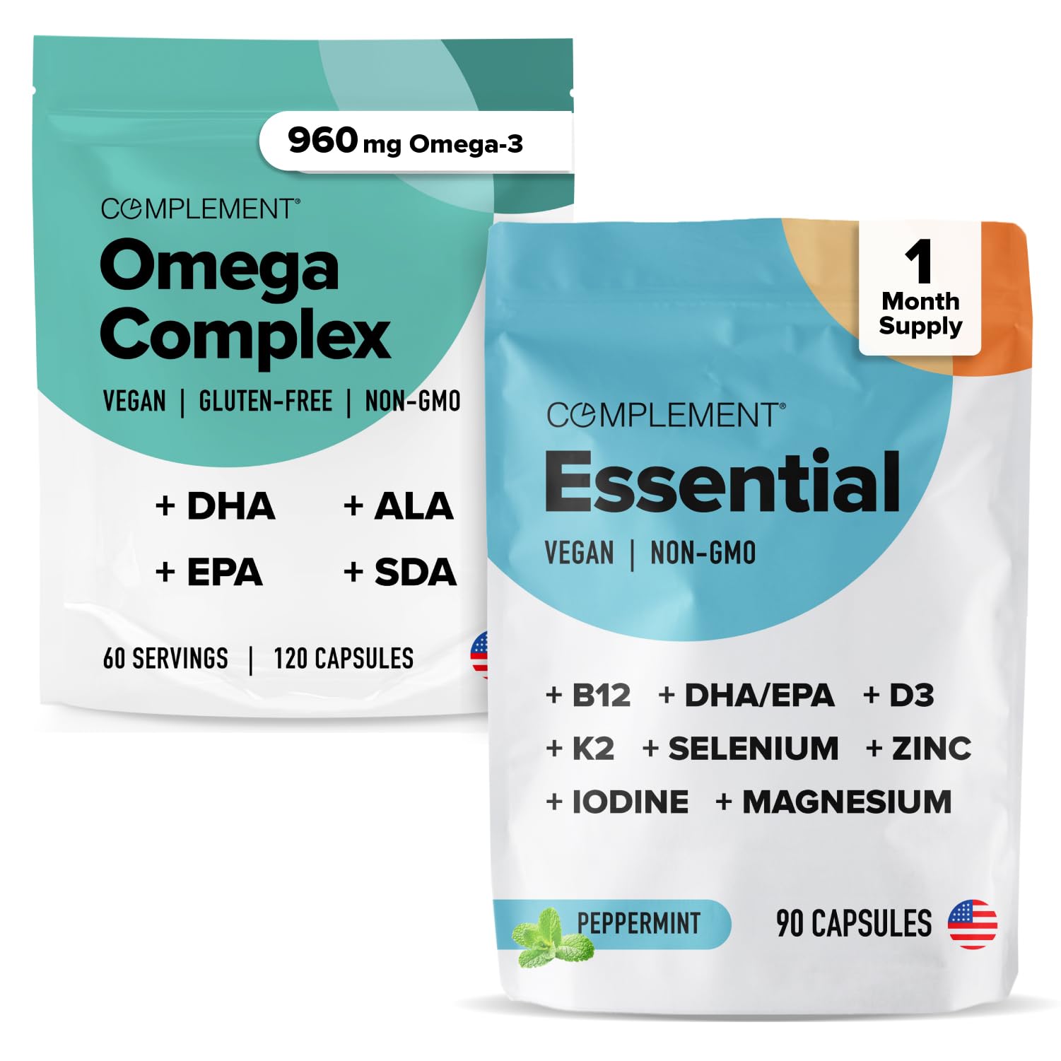 Complement Omega Complex & Essential Multivitamin Bundle Comprehensive Vegan Nutritional Support for Optimal Health and Wellness (30 Servings Each)