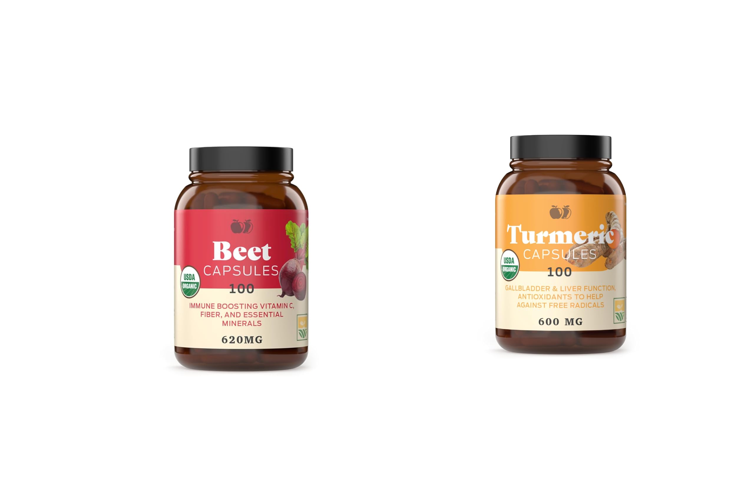 Complete Natural Products Beet Root 100 Capsules & Turmeric 100 Capsules Bundle