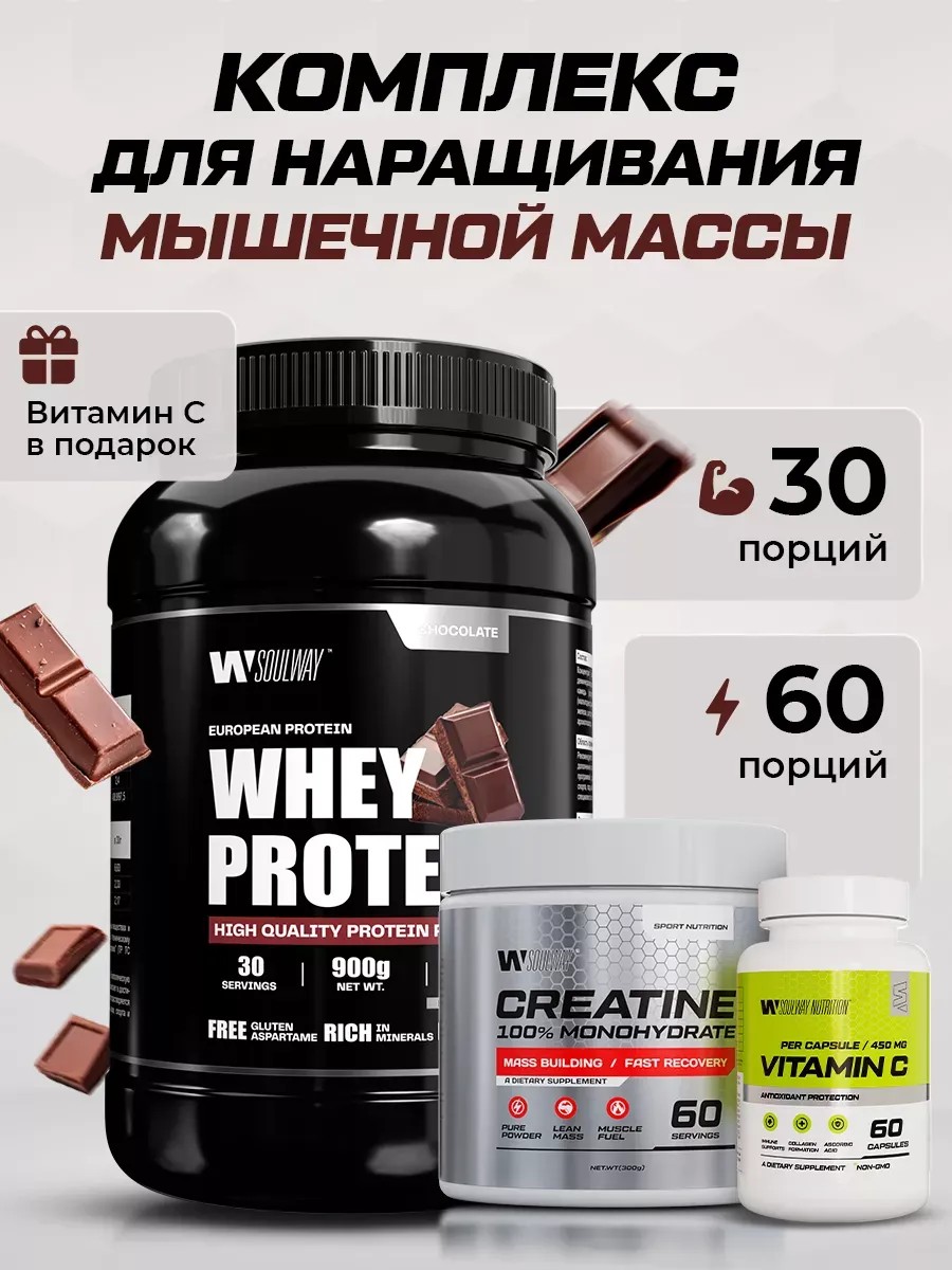 Протеиновый набор Soul Way - это идеальное решение для всех, кто заботится о своем здоровье и физической форме. В набор входит сывороточный протеин вкус Шоколад и креатин моногидрат - это сбалансированная смесь изолята и концентрата сывороточного белка, обогащенная витаминами и минералами. Он содержит все необходимые аминокислоты, включая важные ветвистоцепные аминокислоты (ВЦАК), такие как лейцин, изолейцин и валин, которые играют ключевую роль в стимуляции белкового синтеза и поддержании мышечной массы. Протеин также способствует увеличению мышечной массы и снижению уровня жировых отложений при правильной тренировочной программе. Креатин моногидрат, в свою очередь, улучшает производительность и выносливость во время интенсивных тренировок, а также способствует увеличению объема мышц. Благодаря микронизации, креатин легко растворяется и усваивается, делая его более эффективным. Набор Soul Way представляет собой высококачественное спортивное питание, которое поможет вам достичь ваших фитнес-целей. Выбирайте качество и эффективность с Soul Way!