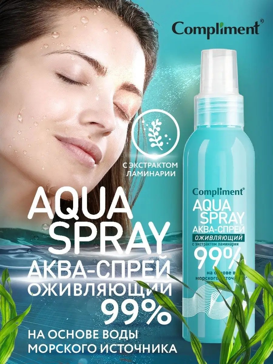 Immerse yourself in a world of luxurious skincare with the innovative aqua spray from Compliment, enriched with precious kelp extract!