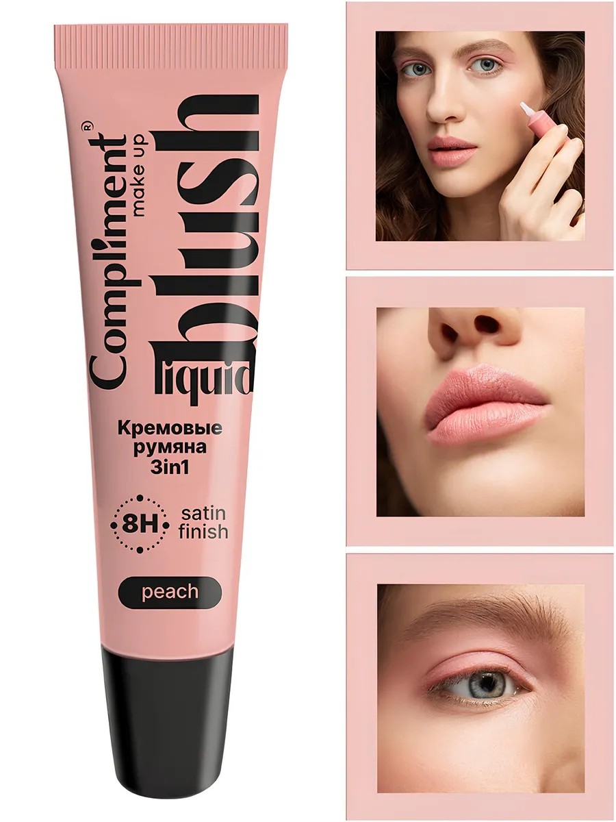 Румяна для лица кремовые Compliment Make Up жидкие 3в1 в тюбике